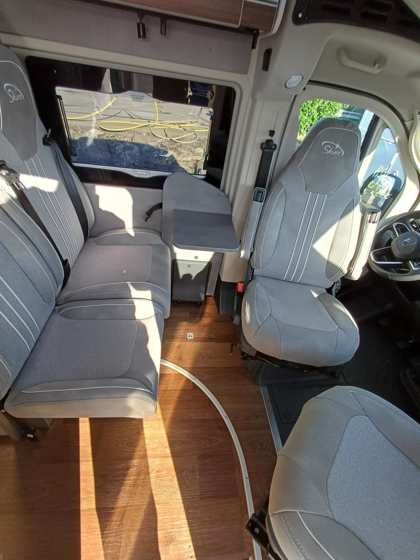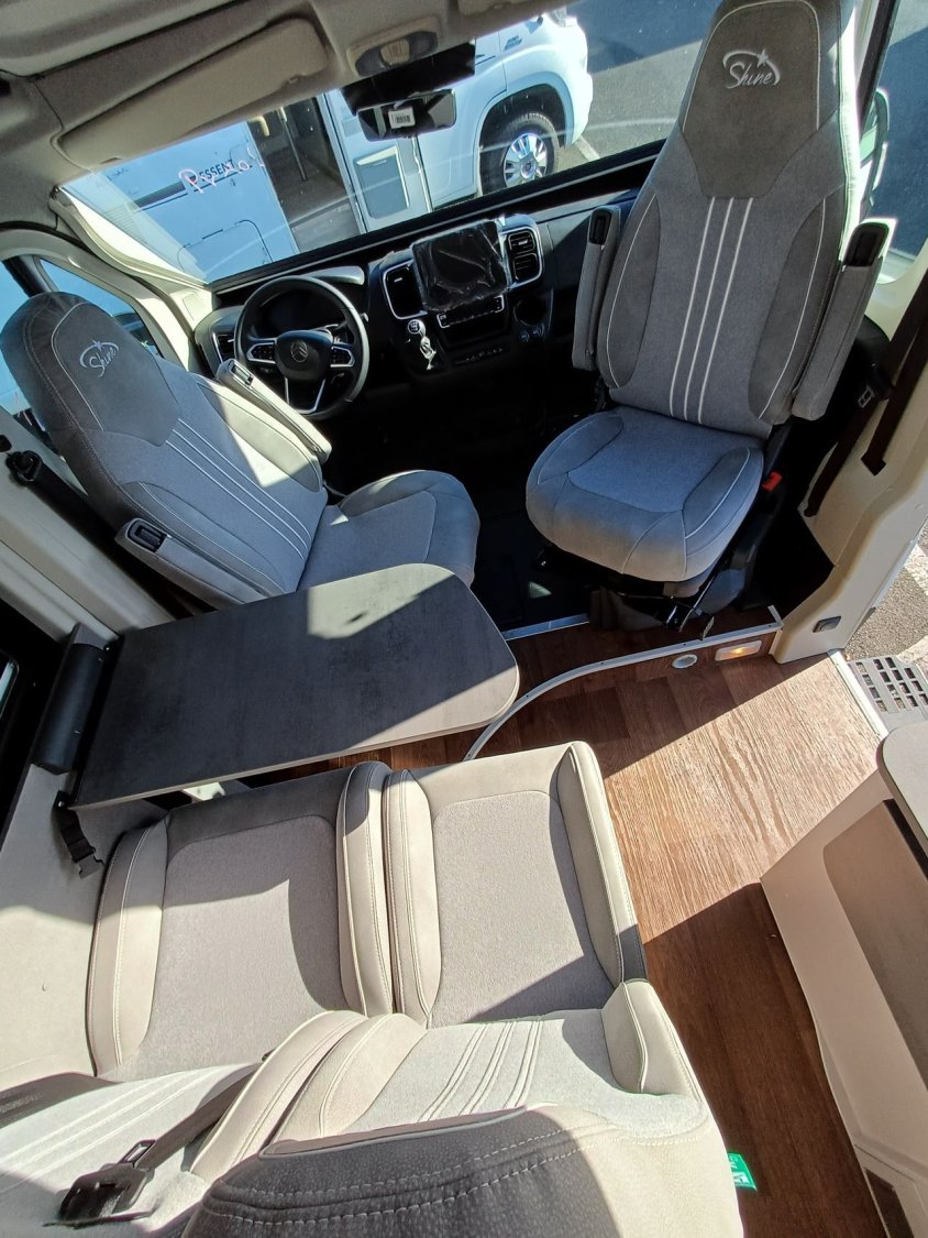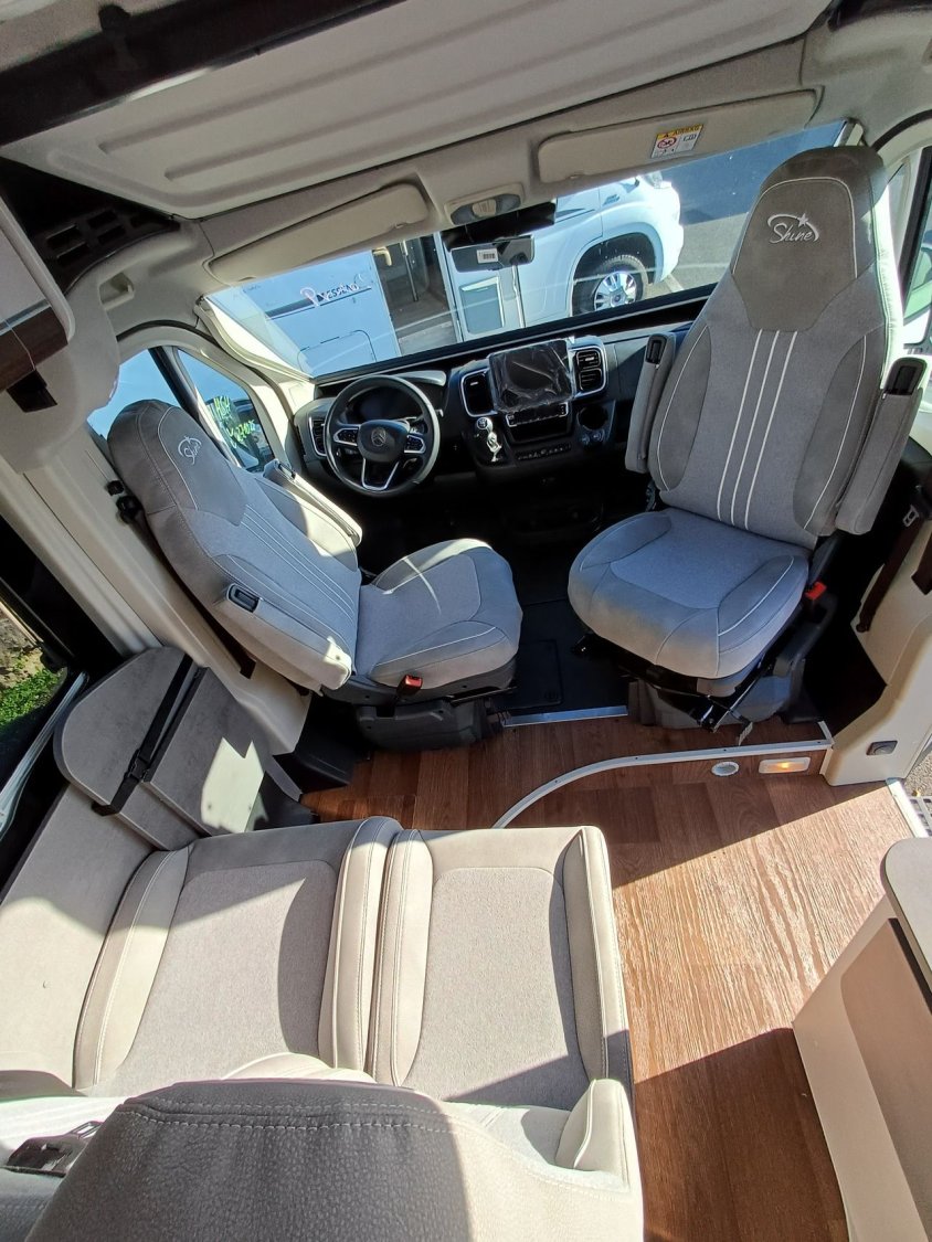 - Pack Premium: Pare-chocs peints (Light)/,Assistant freinage d’urgence,Détection des panneaux de signalisation,Assistance au vent latéral,Assistant de vigilance,Adaptation intelligente à la vitesse ,Régulateur de vitesse adaptatif à partir de 30km/h,Aide au stationnement à 360°,Assistant d'angle mort & de mouvement transversal à l’arrière,Jantes alu de 16’’,Baies à cadre Seitz S4 (uniquement sur H-Line),Tableau de bord Techno Trim,Antenne DAB dans le rétroviseur extérieur,Port USB,Phares antibrouillards,Rétroviseurs extérieurs réglables, dégivrants et rabattables électriquement,Pré-équipement radio avec 4 haut-parleurs,Commandes au volant,Occultants dans la cabine de conduite (Sauf rideau pour Roadcar),Chargeur à induction pour téléphone,Tableau de bord numérique,Avertisseur de franchissement de ligne, maintien de la voie,Sièges Captain Chair pivotant avec accoudoirs,Volant cuir,Marchepied ,Rétroviseur intérieur numérique,Caméra de recul,Capteurs de pluie et de luminosité,Booster de batterie,Traction +,Pneus toutes saisons,Climatisation automatique,Ecran tactile Infotainment 10’’, DAB, Bluetooth, Navigation.