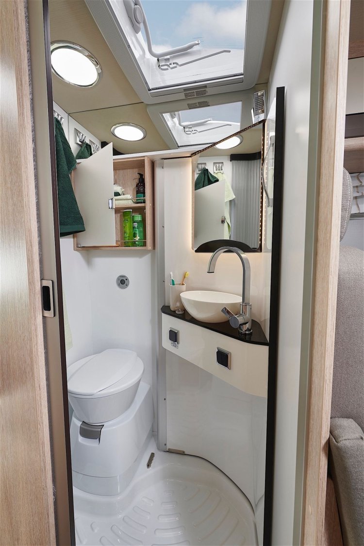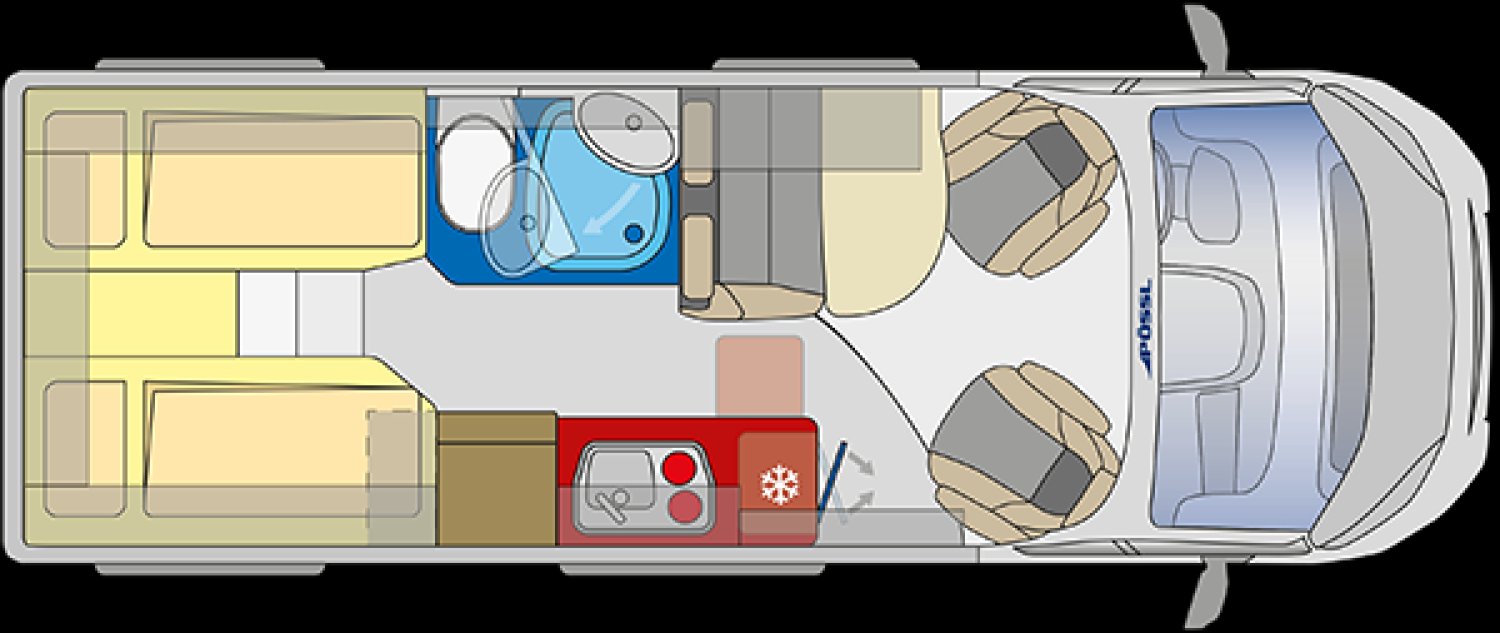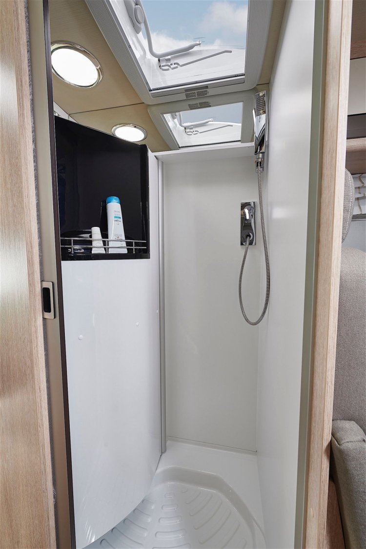 Sa dinette agréable et lumineuse pour une ambiance conviviale. Sa cuisine latérale pratique et fonctionnelle est équipée d’un réchaud 2 feux, évier et plan de travail rabattable. En face, une salle d'eau avec WC, lavabo, et une douche spacieuse. A l’arrière, ce sont des lits jumeaux, pour des nuits confortables et agréables, et plus d’espace. Sans oublier ses nombreux rangements astucieux !