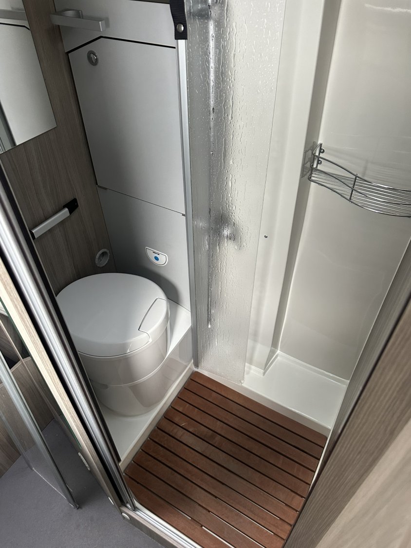 Table dinette amovible, Roue de secours, Régulateur de vitesse, Rétroviseurs électriques et chauffants, Verrouillage centralisé, Vitres teintées électriques, Caméra de recul, Réfrigérateur à compression 70L, Cliamtisation manuelle, Douchette ext. porte latérale, Marchespieds électrique grande largeur, Airbag conducteur & passager, ABS/TCS/ESP, Autoradio commandes au volant