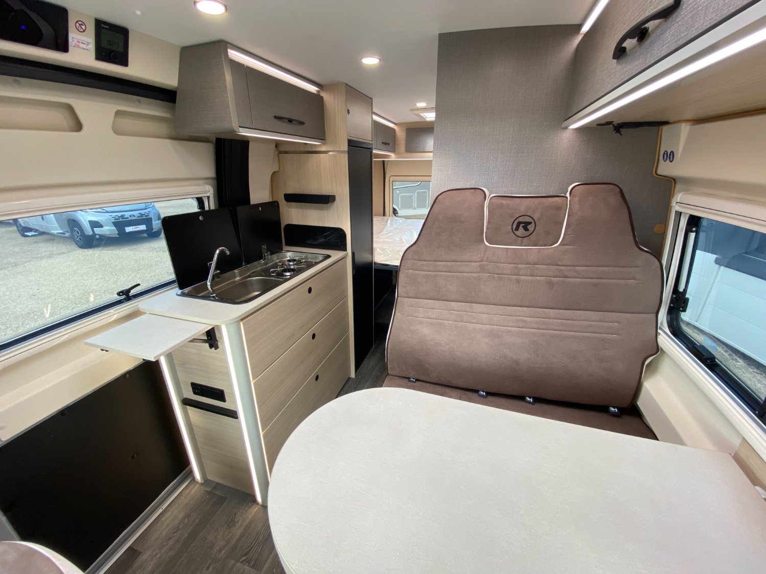 Avec son salon spacieux, son grand lit, sa salle de bain modulable, son frigo à compression grande capacité et sa soute coulissante le R 602 est incontournable pour partir en amoureux ou en famille.