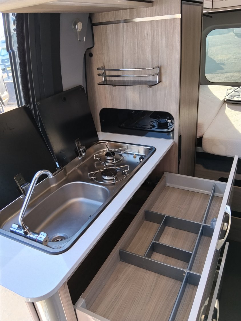 BATTERIE LITHIUM, PEINTURE GRIS FER, REFRIGERATEUR 138 LT, STORE EXTERIEUR, PANNEAU SOLAIRE, MARCHEPIED ELECTRIQUE, STORE D'OCCULTATION CABINE TYPE REMIS, MULTIMEDIA + CAMERA DE RECUL, COUCHAGE DINETTE, MOUSTIQUAIRE DE PORTE CELLULE