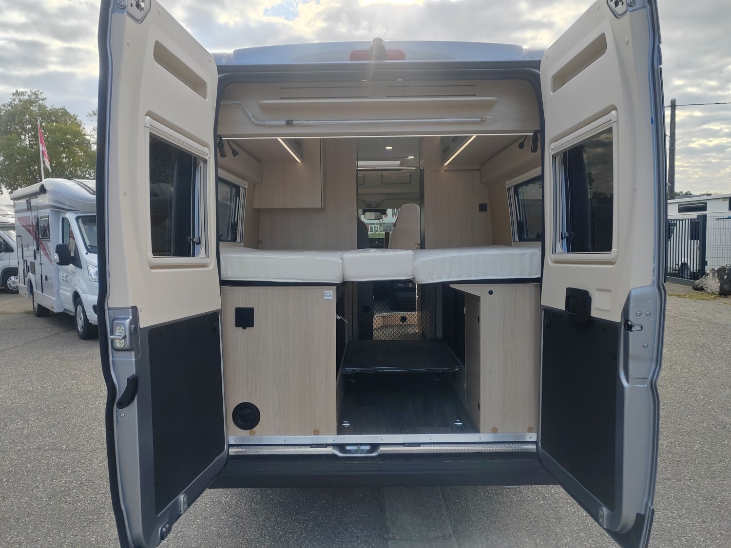 PACK MULTIMEDIA DE SERIE, REFRIGERATEUR A COMPRESSION 138 L, PANNEAU SOLAIRE, PACK LOISIRS COMPRENANT :, - JANTES ALU 16", CHAUFFAGE DIESEL COMBI 4, COMMANDES AU VOLANT, - STORE EXTERIEUR, OCCULTANTS CABINE, BANQUETTE ISOFIX, - MARCHE PIEDS ELECTRIQUE, BATTERIE LITHIUM 120 AH