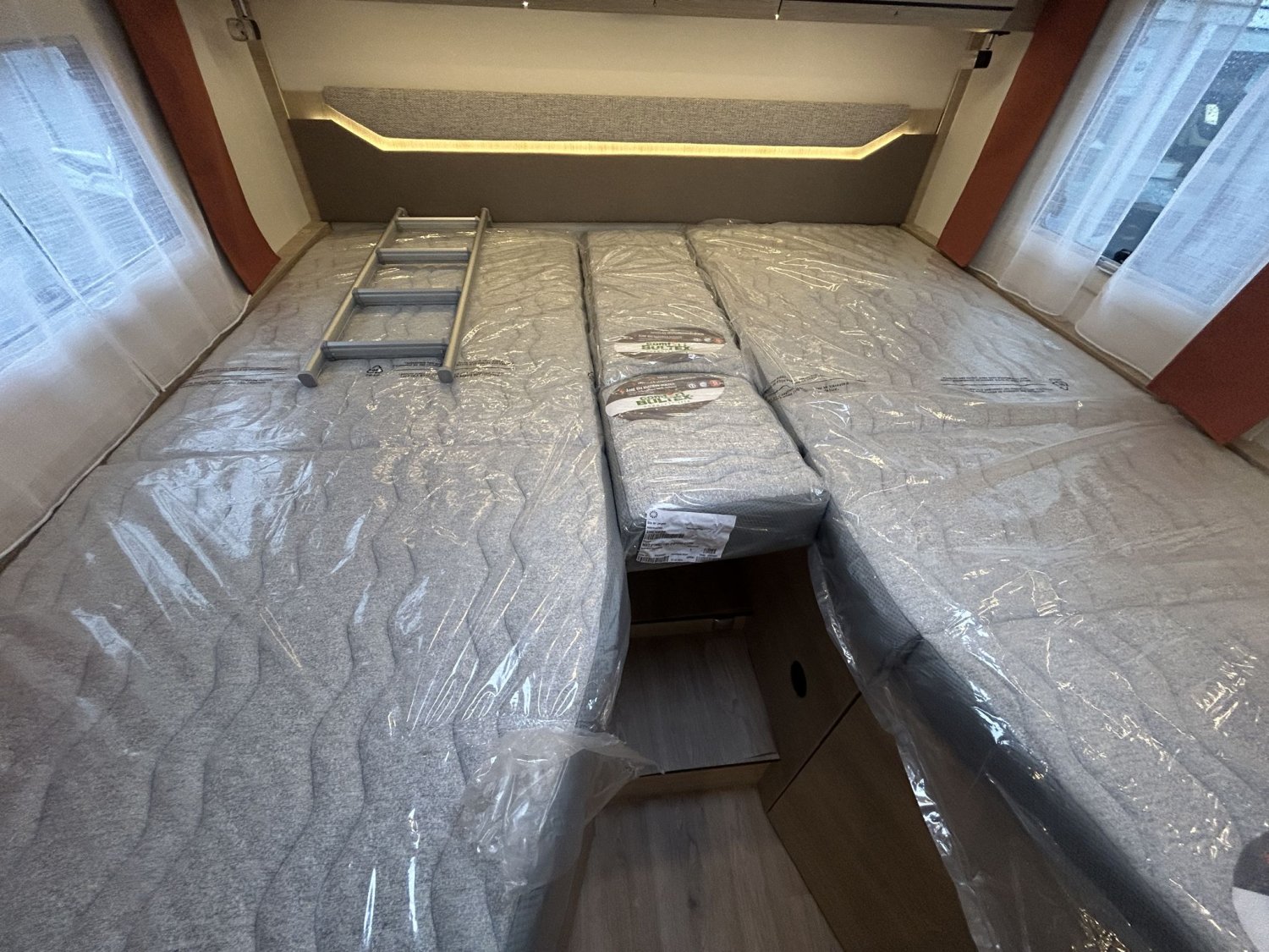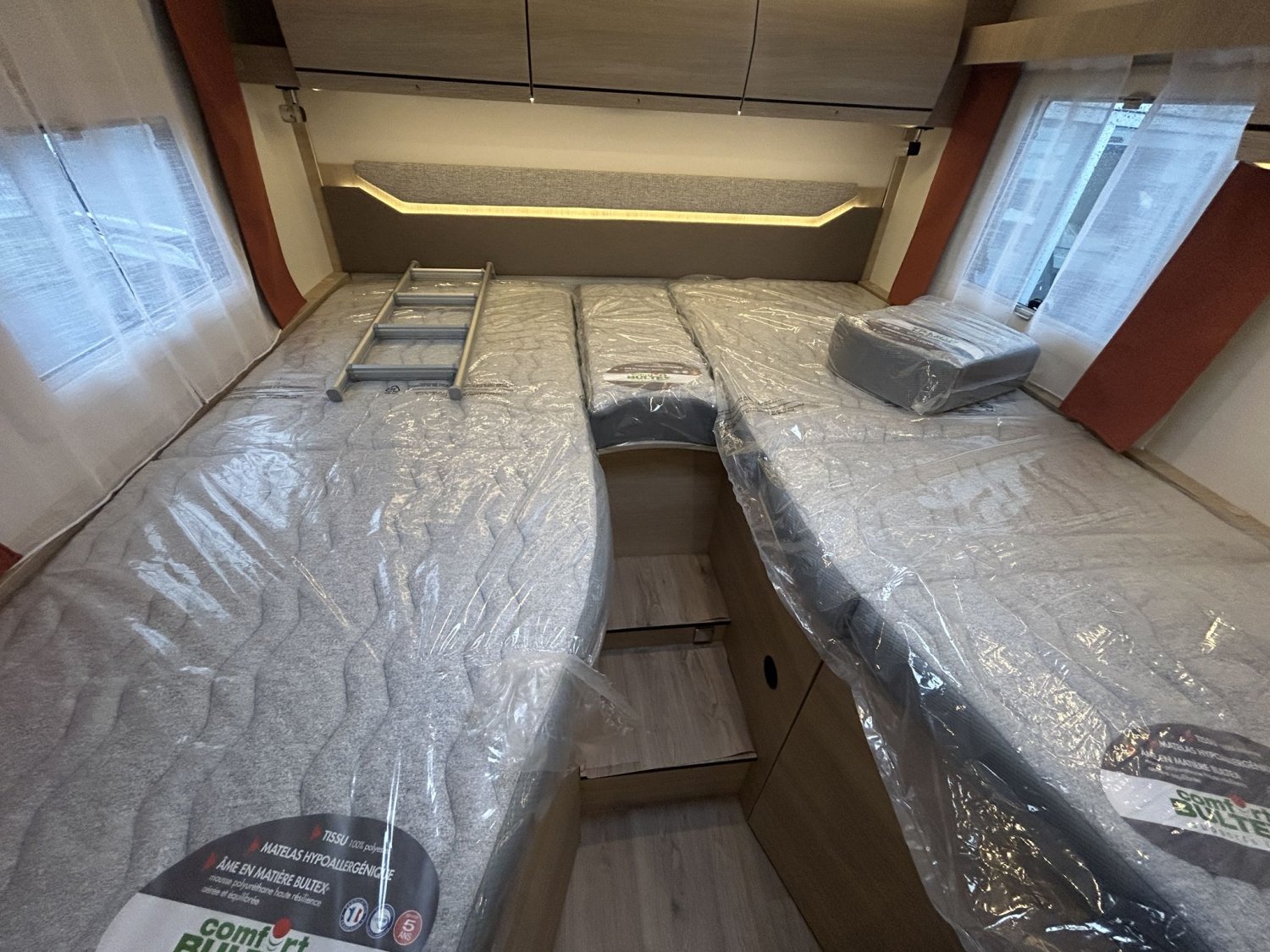 Profilé 7,49m Salon face à face avec lits jumeaux et lit de pavillon boite automatique
