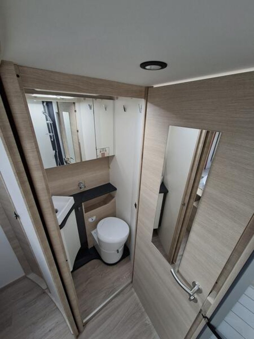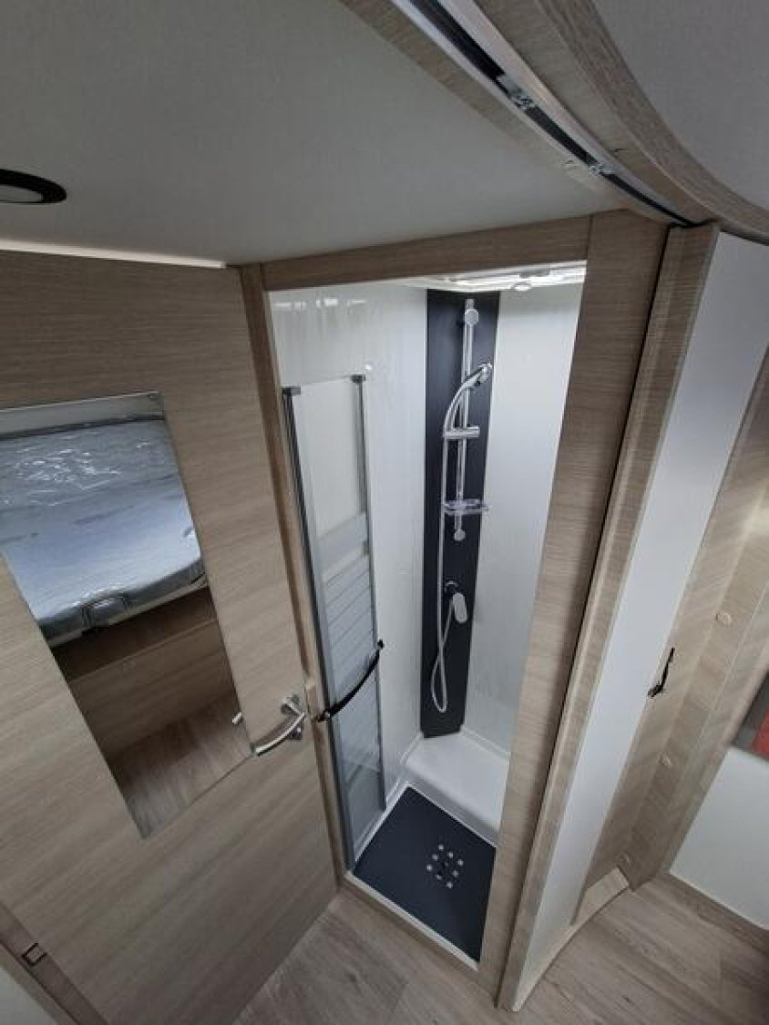PACK SELECT Caméra de recul avec écran de contrôle intégré au tableau de bord • Station multimédia DAB PIONEER® avec écran 6,8" et fonctions APPLE CARPLAY/ANDROID AUTO • Commandes au volant pour radio • Peinture pare-chocs avant couleur carrosserie • Skid plate noire • Phares antibrouillard avant • Pneus all season 3PMSF • Traction+ avec Hill Descent Control (aide au maintien de la vitesse en descente) • Stores pare-brise et baies cabine double plissés à cassette • Porte cellule à serrure 2 points avec baie fixe et poubelle intégrée • Moustiquaire de porte cellule • Inverseur automatique, permet de rouler avec le chauffage gaz (système anticrash) • 2e clef télécommandée (PLIP) : 4250 €