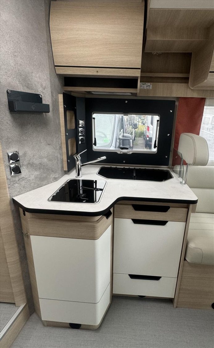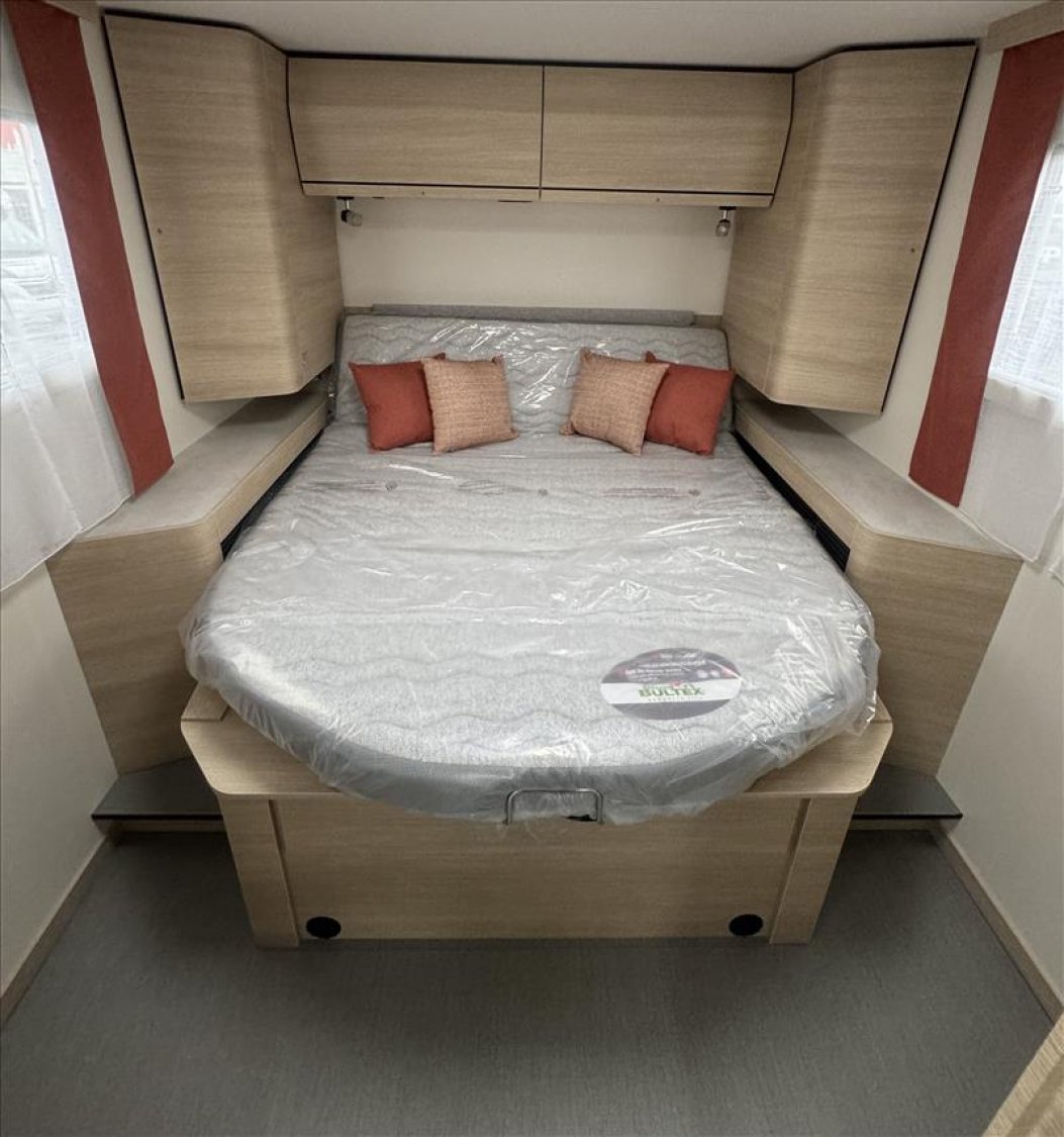 SOMMIER LIT CENTRAL RETRACTABLE, CHAUFFAGE TRUMA COMBI 4 AVEC COMMANDE DE CHAUFFAGE CP PLUS, RANGEMENTS ADDITIONNELS DANS LES COFFRES DE BANQUETTES SALON, REFRIGERATEUR AES 156L, PORTE CELLULE L 540MM, Hotte cuisine encastrée avec éclairage LED, LIT CENTRAL XXL 160X196CM, Stop & Start, Verrouillage centralisé portes cellule et cabine, Tiroir de rangement en façade de lit central, Emplacement 2ème TV dans chambre avec précâblage 12 V - coax, SOUTE/GARAGE CHAUFFE, RAMPE D ECLAIRAGE LED PLAFOND SOUTE