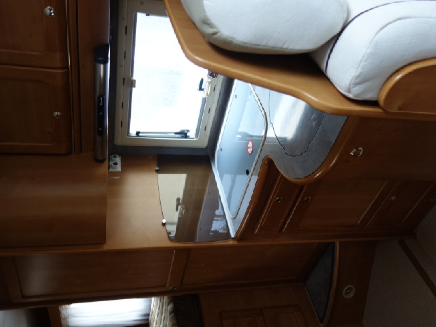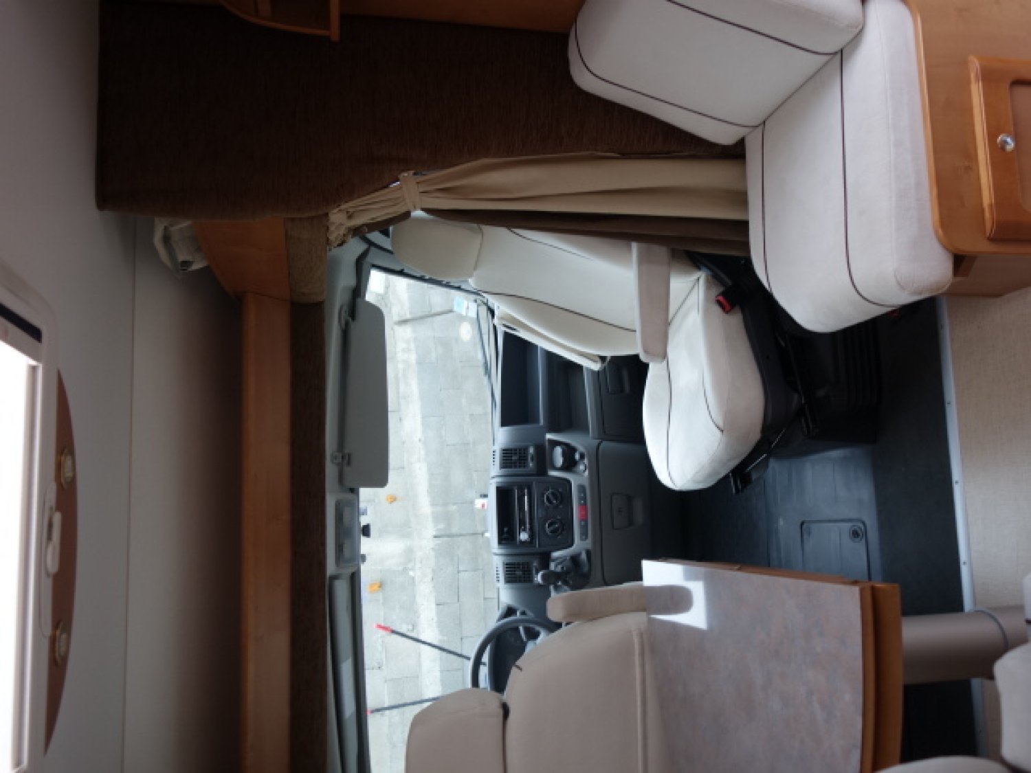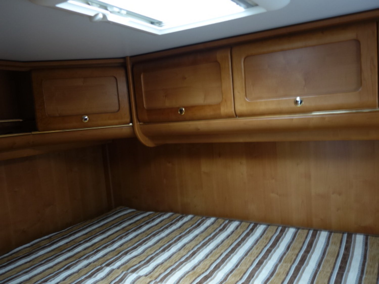 Profilé avec lit arrière transversal sur garage, cabinet de toilette avec WC et douche séparée, dinette convertible, équipements: store, panneau solaire, antenne TV htz, TV, auto radio, caméra de recul, porte vélos, attelage, 3 serrues de sécurité.