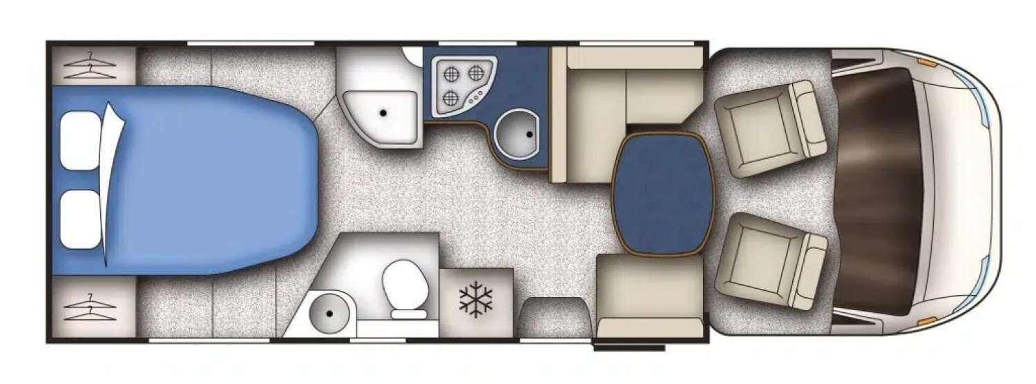 Couchage : Lit dinette (210 x 105 cm ), , Lit permanent arrière (193 x 140 cm)