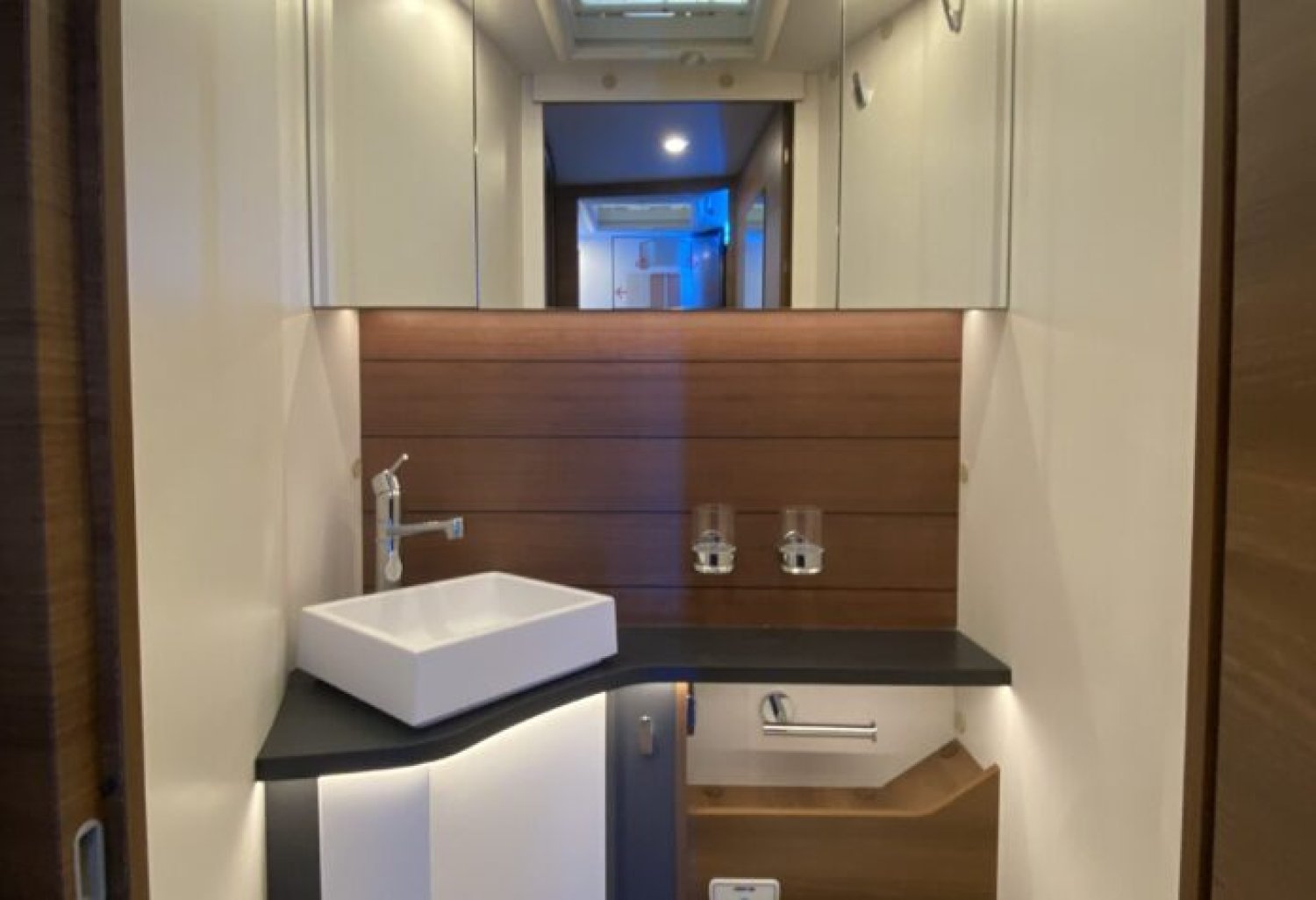 Cabinet de toilette avec crédence type pont de bateau