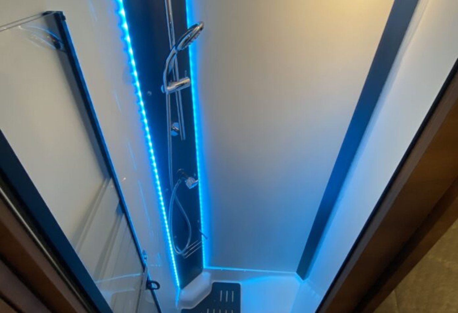 Colonne de douche avec habillage alu finish rétroéclairé / Caillebotis douche noir