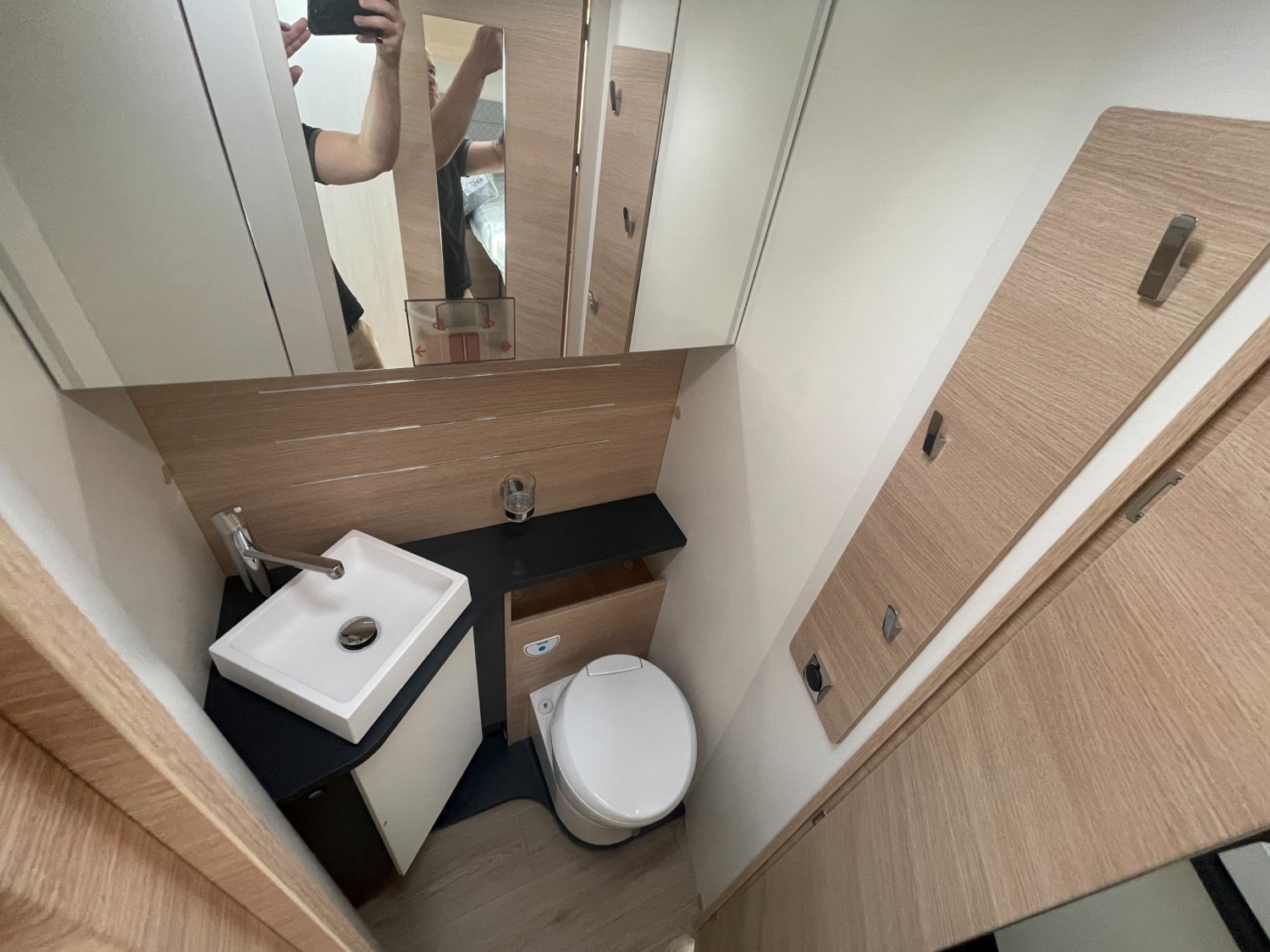 MARCHEPIED ELECTRIQUE ACCES CELLULE, PORTE CELLULE XL, PLAQUES 2 CUISSON FEUX INOX ALLUMAGE PIEZZO, ROBINET METAL LAITON AVEC DOUCHETTE, VERINS PORTILLON DE SOUTE, COFFRE A GAZ 2 BOUTEILLES 13KG, REFRIGERATEUR 156L, SOUTE/GARAGE CHAUFFE, MEUBLE TV OUVERT POUR TV32", TABLE PORTEFEUILLE, DOUCHE SEPAREE ET INDEPENDANTE, WC A CASSETTE EXTRACTIBLE, AVIER INOX COUVERCLE NOIR, CAILLEBOTIS DE DOUCHE NOIR, VOLANT ET POMMEAU DE LEVIER CONFORT, COLONNE DE DOUCHE AVEC HABILLAGE GRIS, CLIMATISATION CABINE MANUELLE