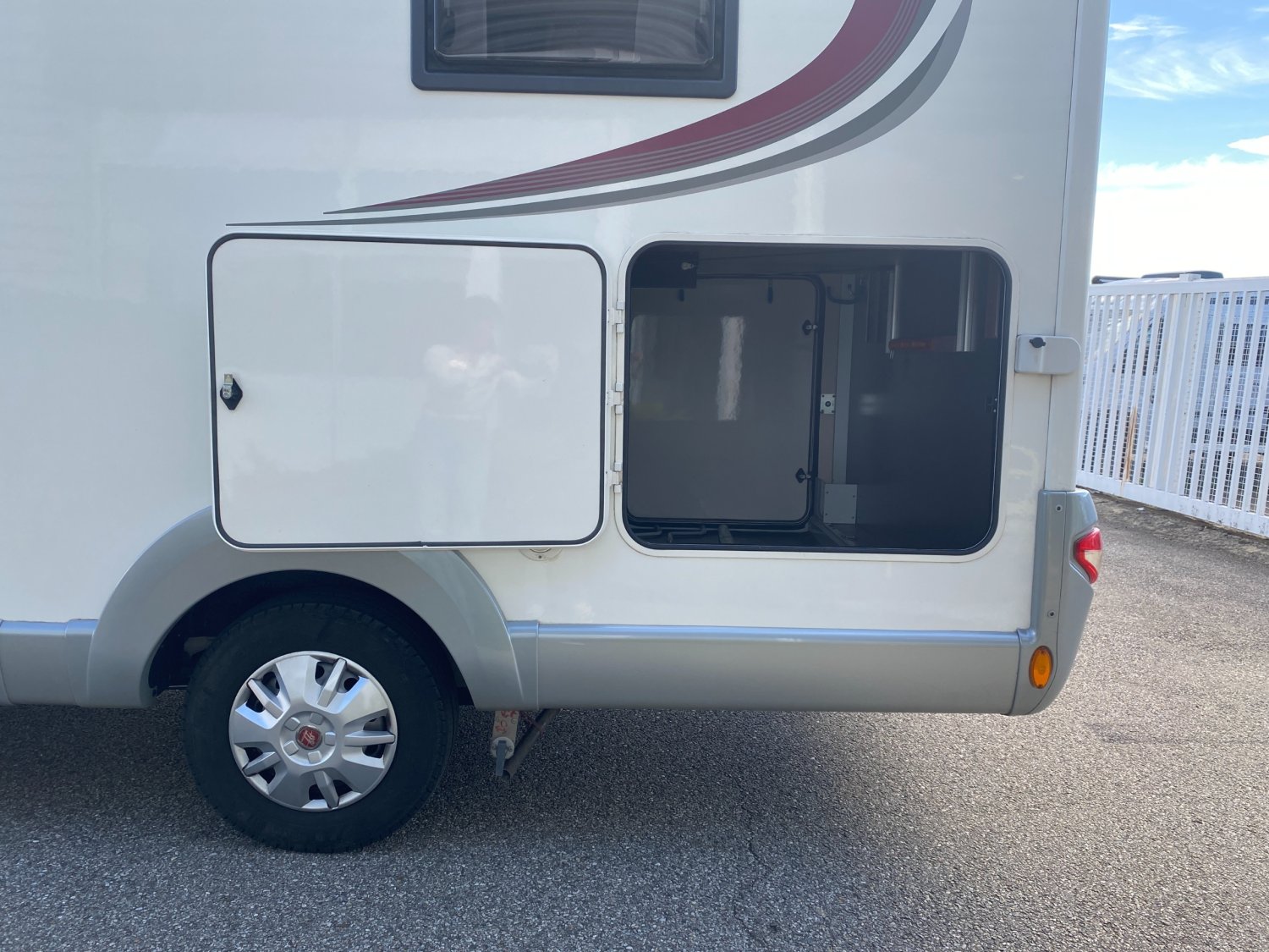 Bel intégral Rapido de 6,99 m, alliant confort et praticité, offrant 4 couchages avec un lit pavillon et un lit central réglable en hauteur, donnant une grande soute. Véhicule possédant un châssis Al-Ko, ainsi qu’un double plancher. Très bien équipé : store extérieur, panneau solaire, parabole automatique, TV, caméra de recul.