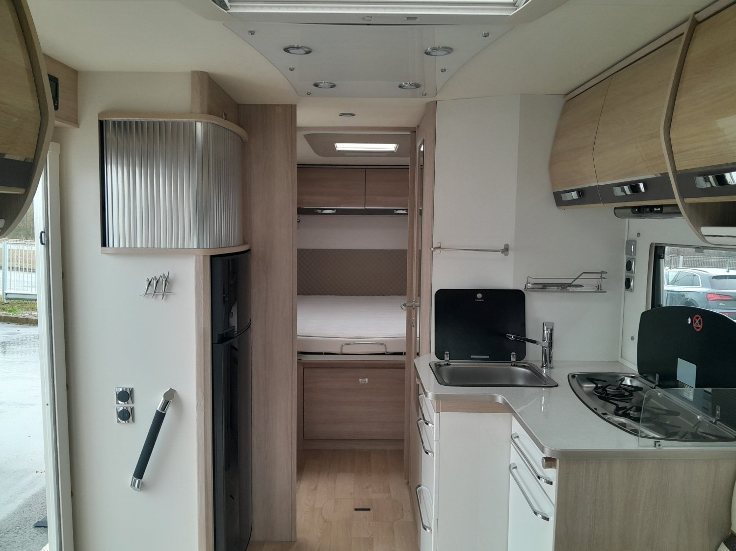 options incluses: chassis AL-KO double plancher, store, 2 panneaux solaire, tv+antenne auto, hotte, caméra de recul, autoradio double DIN Pioneer, porte 2 vélos, lit King Size 160cm, salon face/face.