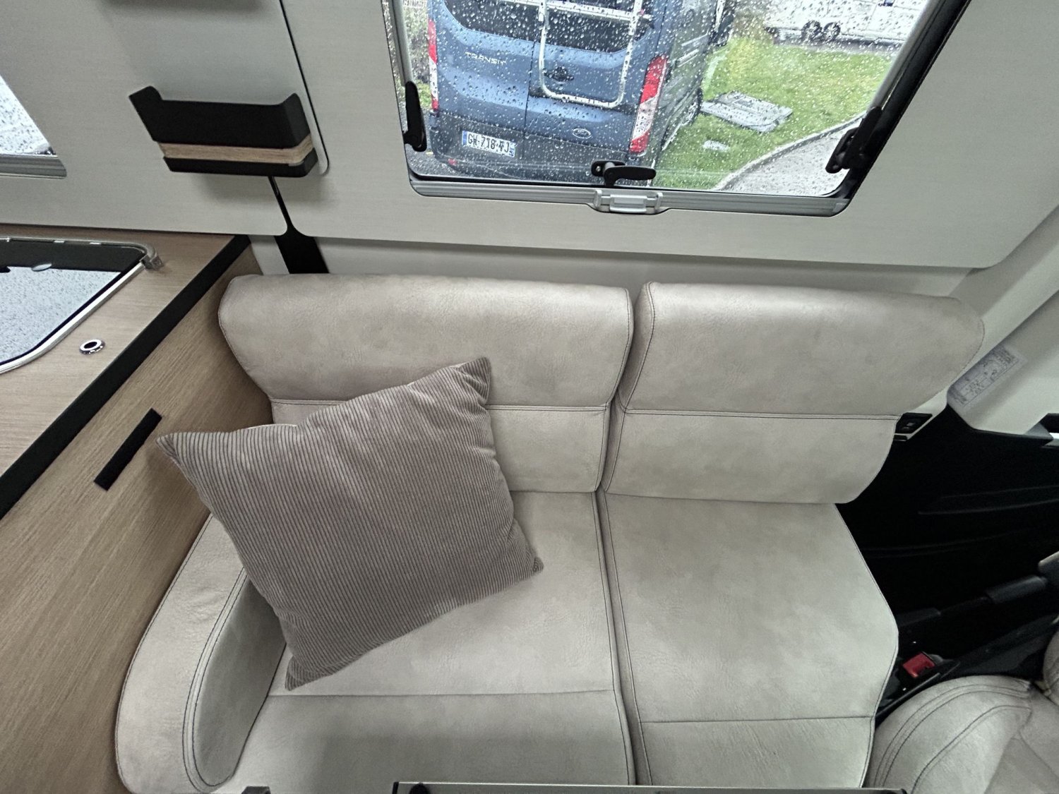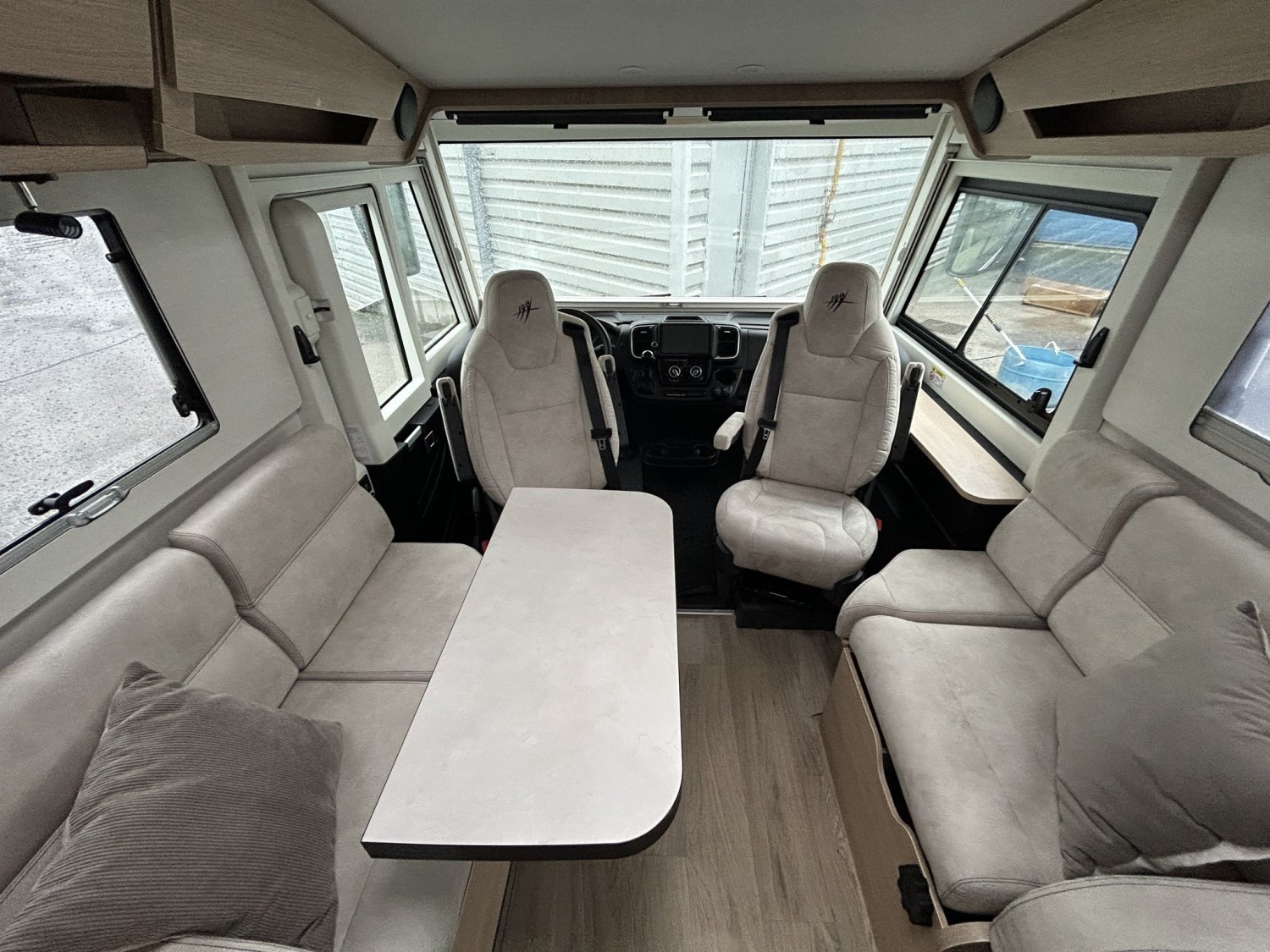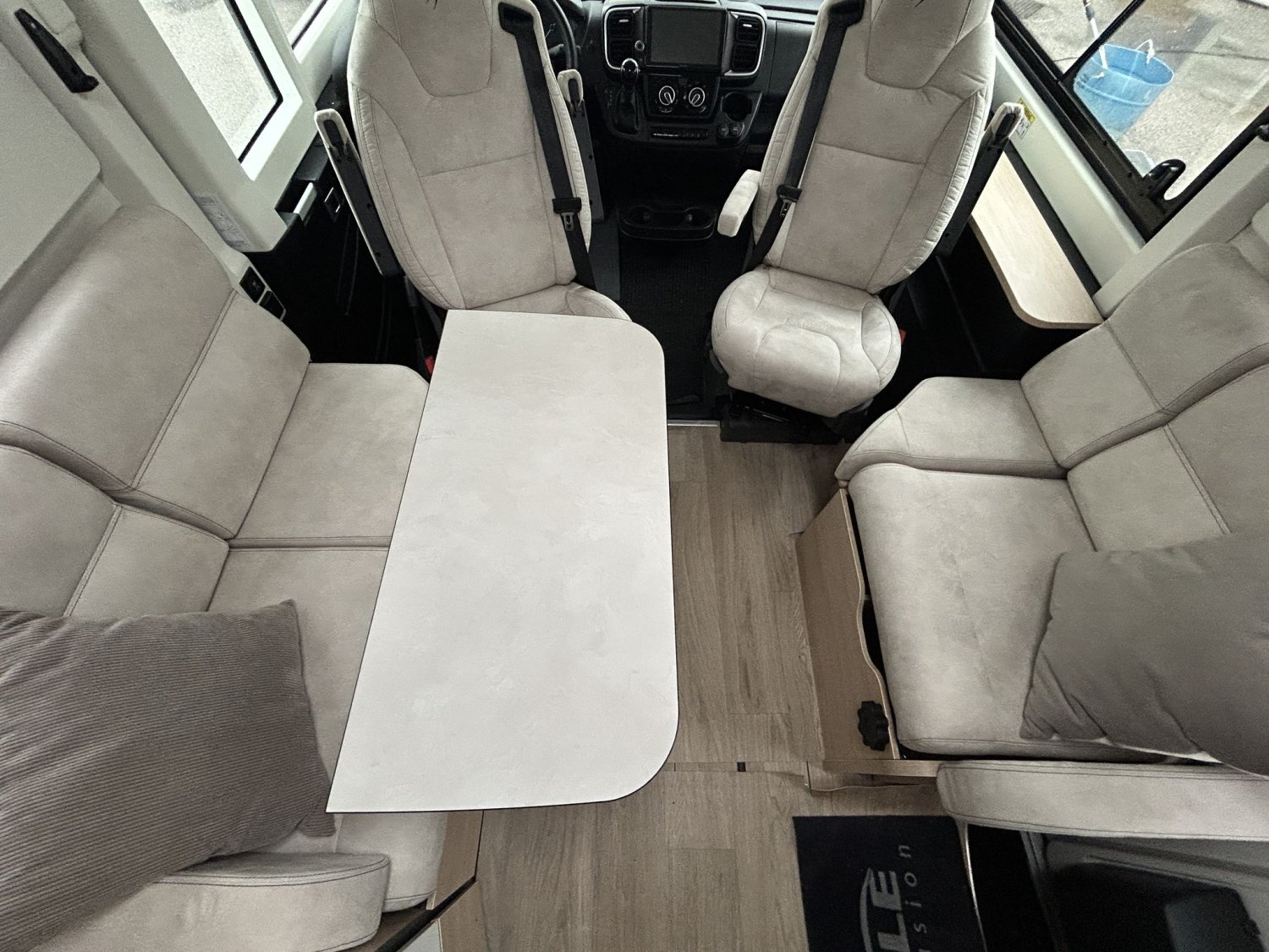 ⭐ Les plus du camping-car🛋️ Espace de vieGrand salon ouvert avec banquettes face à face