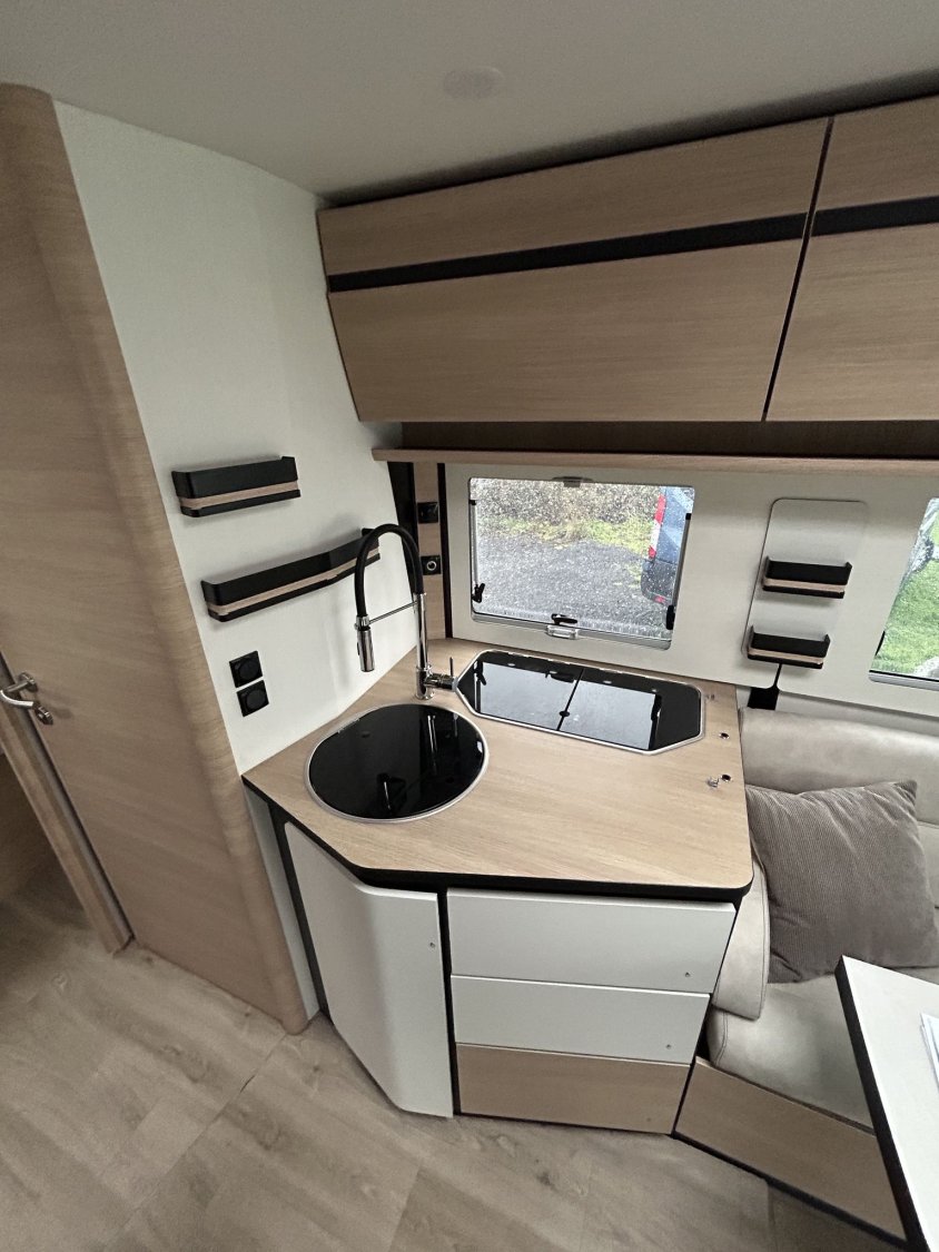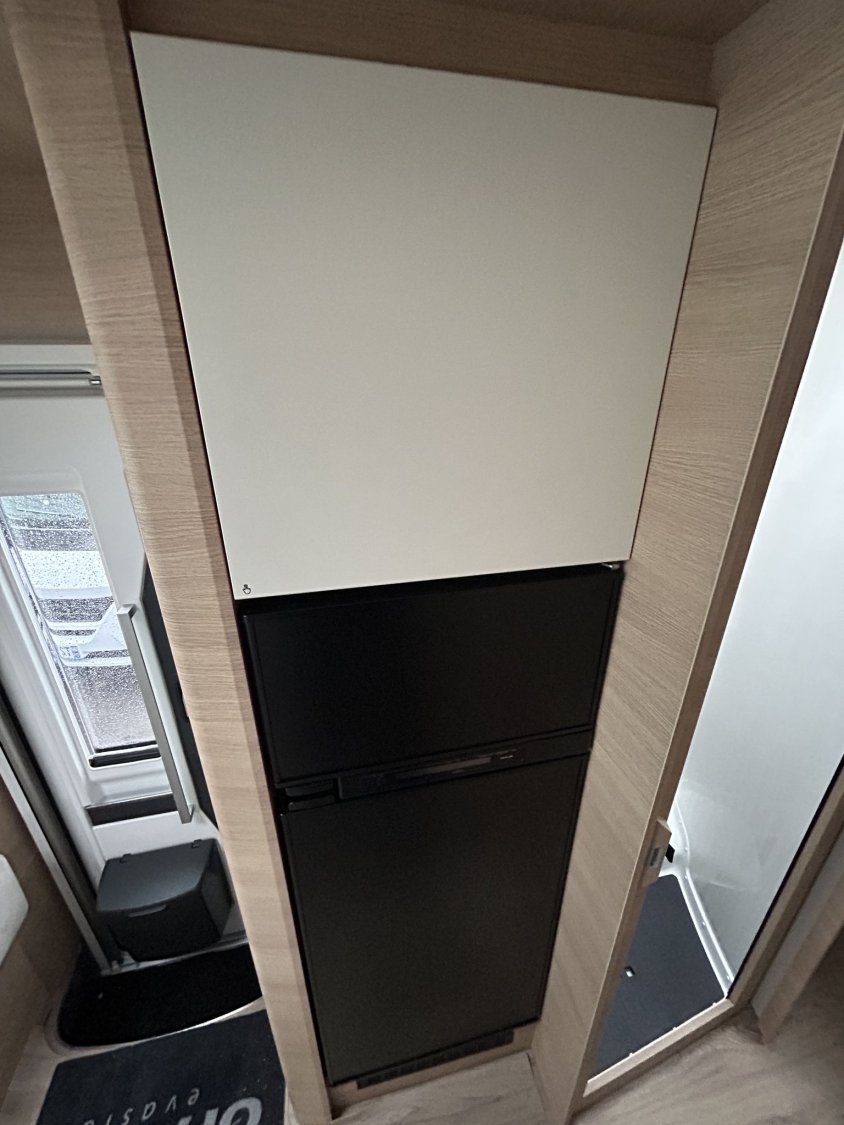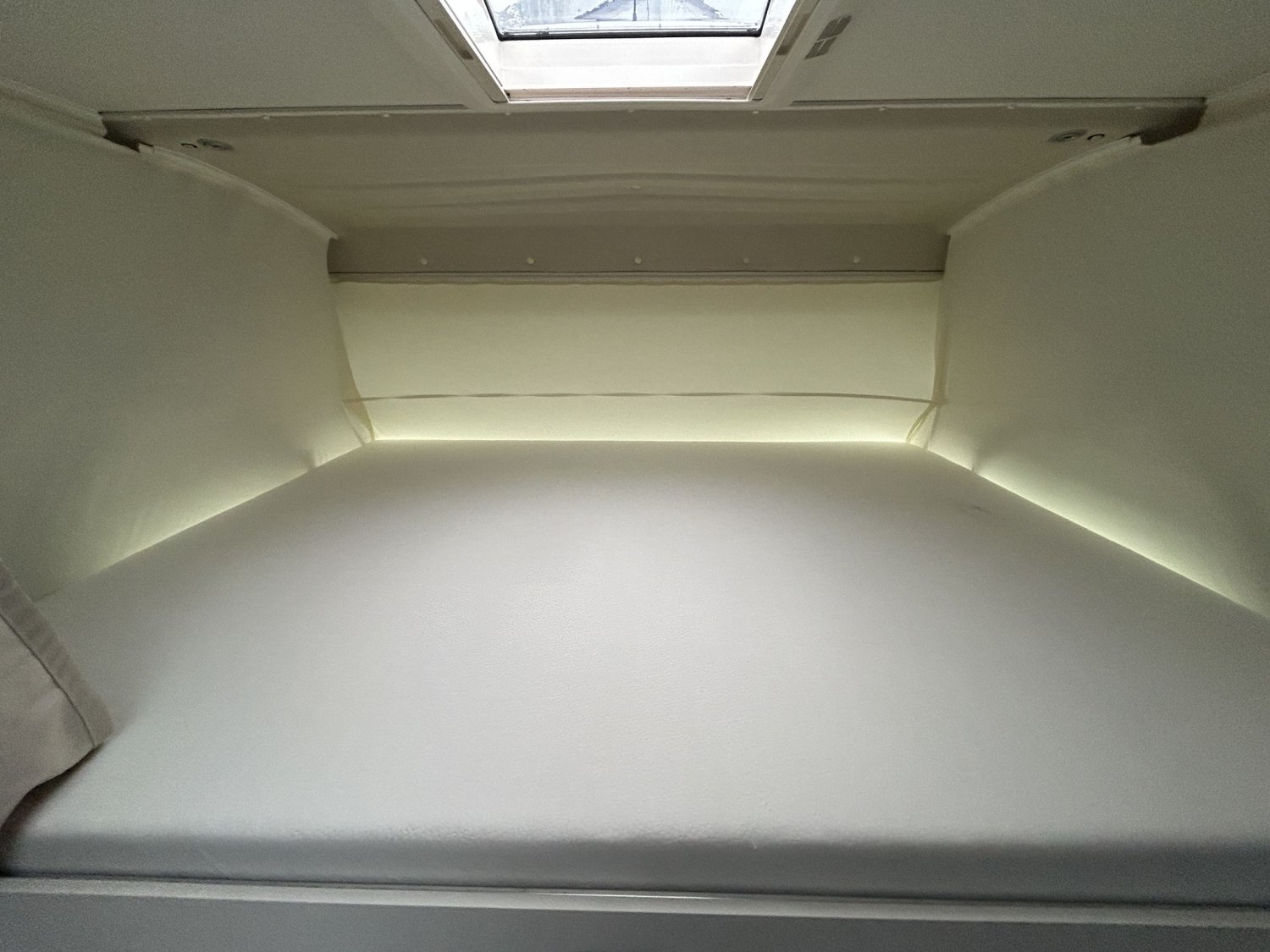 🛏️ Aménagement & confort intérieurLit permanent réglable en hauteur, assisté par vérins électriques