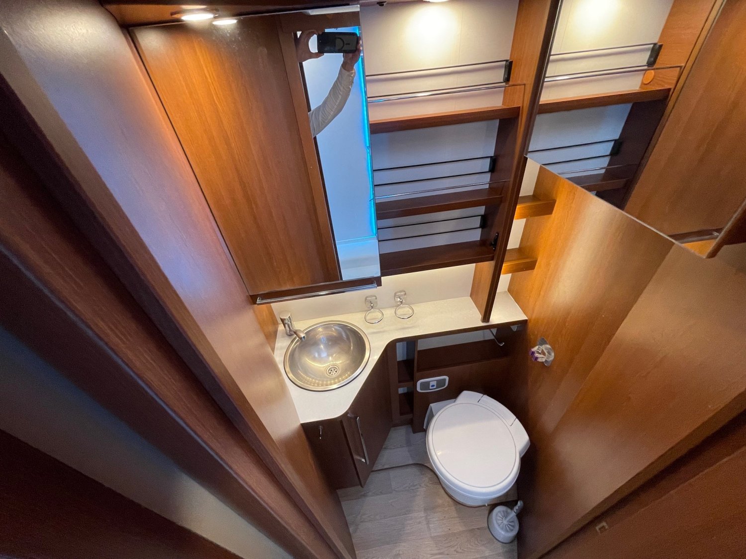 Ce camping-car intégral sur châssis al-kor offre un agencement pensé pour le confort et l’espace. Salon face-face, lit de 160 cm réglable en hauteur, cabinet de toilette à double cloisonnement.