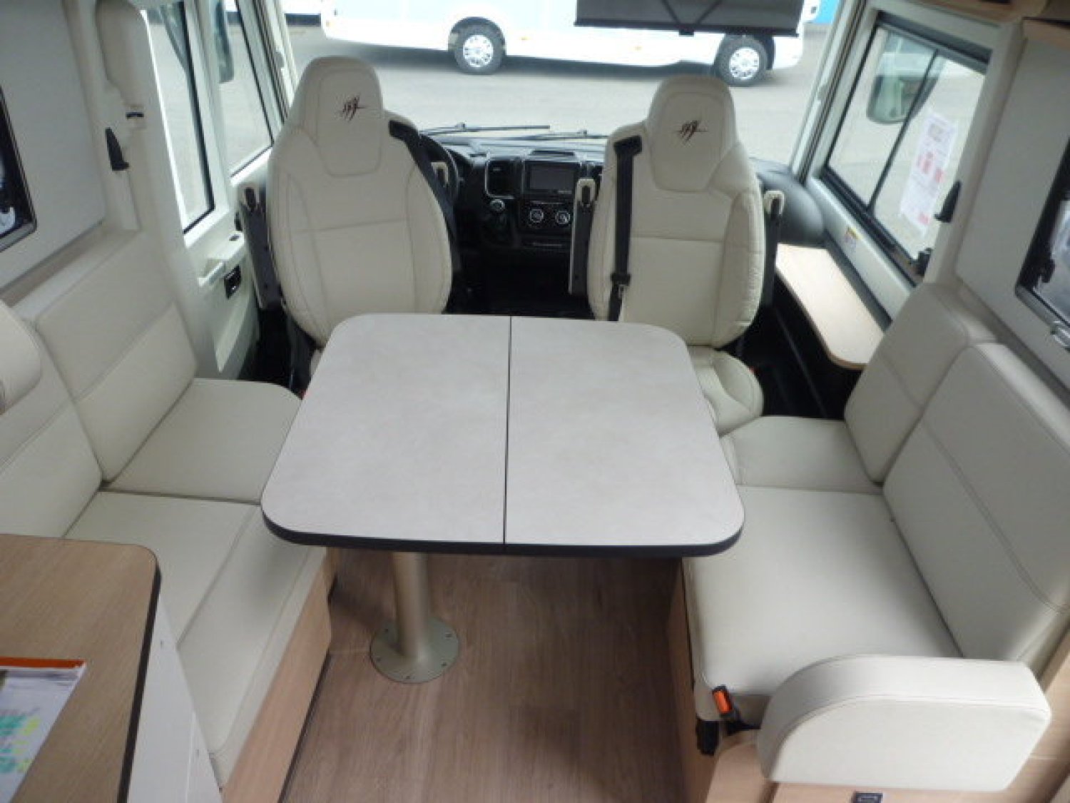 Cuisine en L, Douche indépendante, Grande soute, lit pavillon cabine, Lits jumeaux sur soute, Salon avant banquettes face à face, Salon avant sièges pivotants, Soute réglable en hauteur.