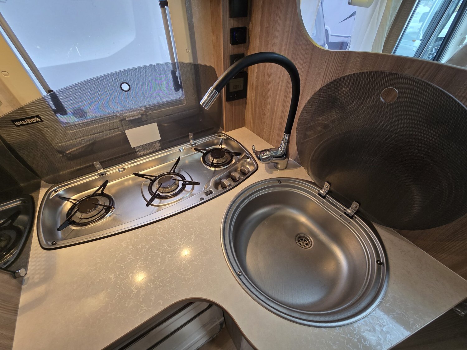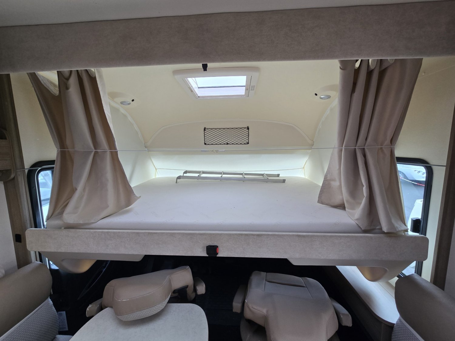 STORE EXTERIEUR – CAMERA DE RECUL – PORTE VELO – STATION MULTIMEDIA – PANNEAU SOLAIRE – HOTTE ASPIRANTE – REGULATEUR DE VITESSE – 2 TVS – ANTENNE SAT AUTO – MOUSTIQUAIRE PORTE CELLULE – CLIM DE TOIT 220V – PRISE GAZ EXTERIEURE – STORES PLISSES CABINE – LIT ARRIERE REGLABLE EN HAUTEUR – 2 BATTERIES GEL 110AH – CONVERTISSEUR 12/220V – VENTILATEUR FRIGO – COMMANDE CHAUFFAGE CP +…