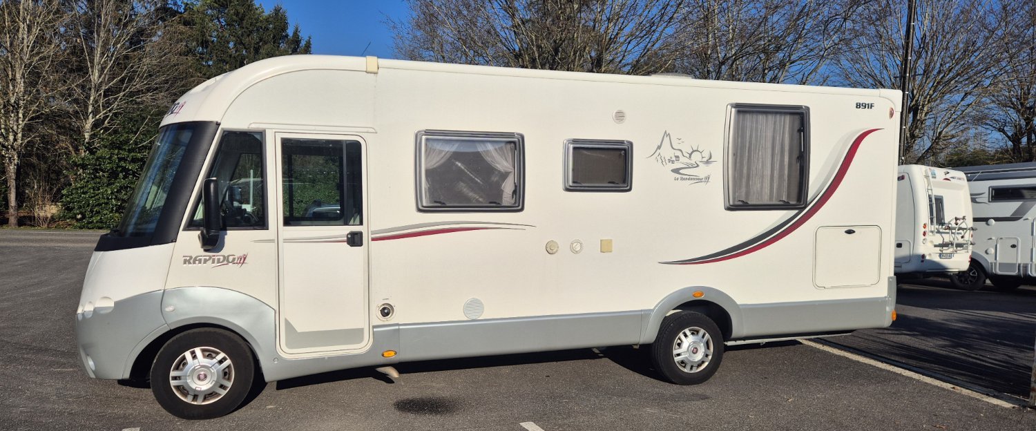 RAPIDO 891 F Intégral 4 couchages, Diesel - 2013 - 55 207 km - FIAT DUCATO 130 CV, 51 900 €. Porteur : Fiat Ducato 2,3 l 130 ch L x l x h : 7.37 x 2.35 x 2.82 m PTAC/CU (kg) : 3500/445 Places C.G./nuit/repas : 4/4/5 Clim cabine : Oui Carrosserie : Polyester Cuisine : avec réchaud 3 feux - réfrigérateur 160 litres Couchage : Lit permanent arrière (140 x 193 cm), Lit de pavillon (140 x 190 cm) Toilette : WC à cassette Douche : Indépendante Store extérieure Panneau solaire Moustiquaire de porte Caméra de recul Attelage Antenne satellite automatique GPS Garmin Régulateur de vitesse Poste Multimédia Véhicule entièrement révisés mécanique et cellule(distribution, test d'étanchéité...) garantie commerciale 12 mois