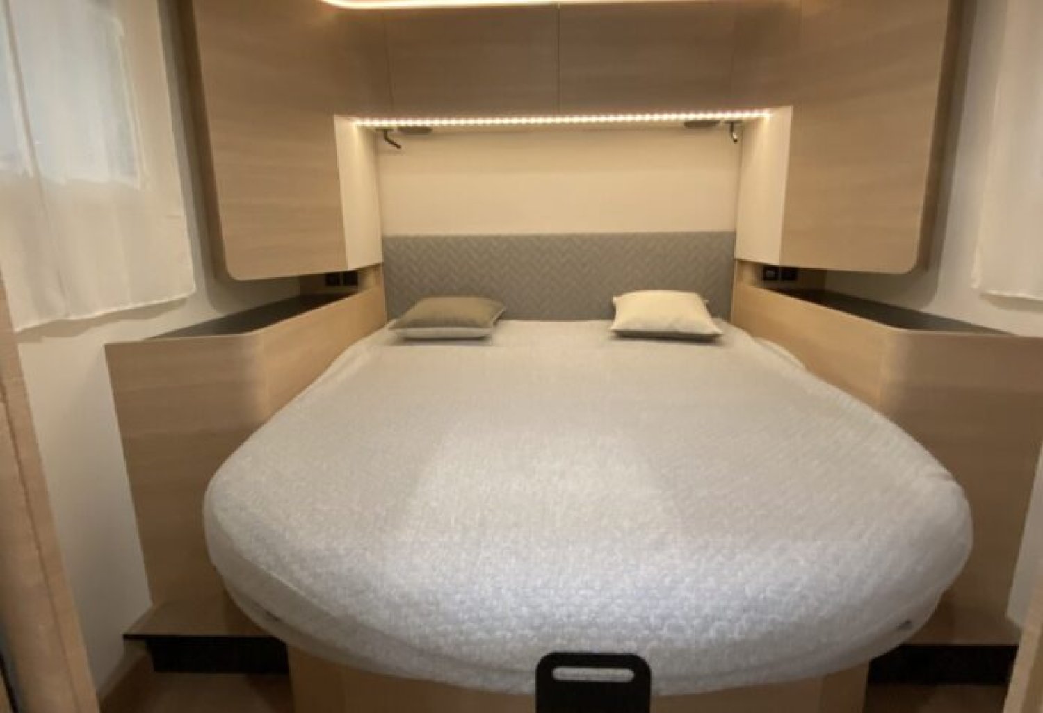 Le Rapido 896 F collection 2026 est un intégral très intéressant pour qui recherche le confort d’un « camping-car luxe » dans une taille encore raisonnable (7,5 m), avec un bel agencement intérieur, un lit central confortable, un salon convivial, et des finitions soignées.