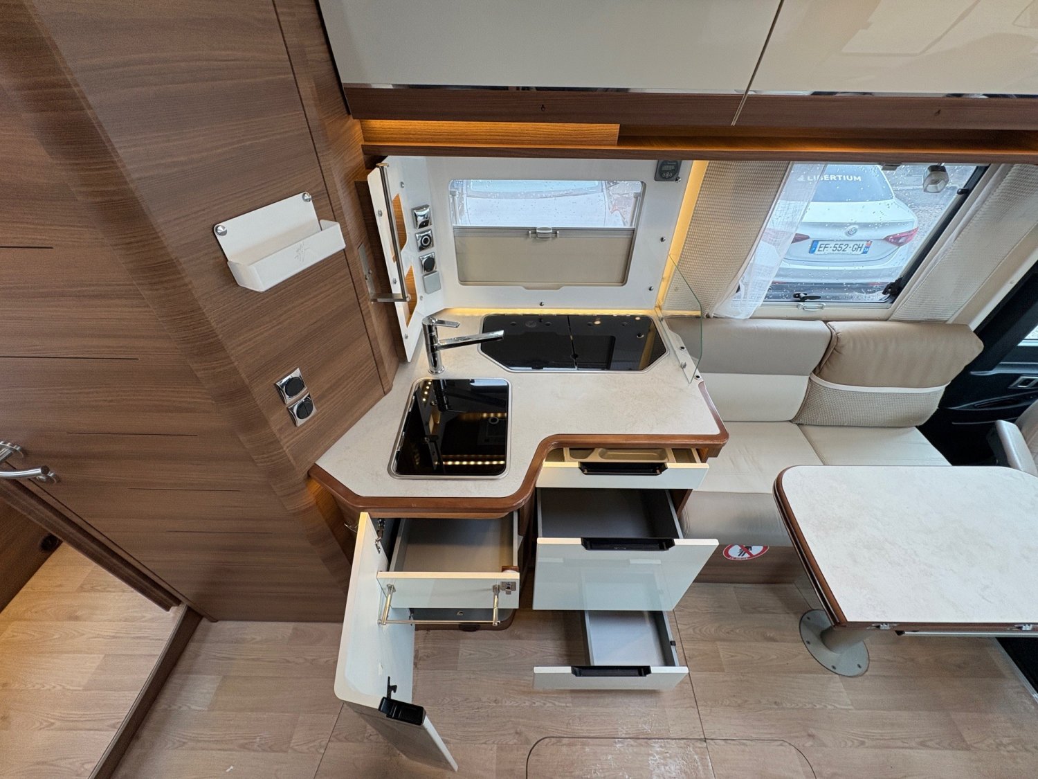 BOITE AUTOMATIQUE ZF9, ATTACHE REMORQUE, STATION MULTIMEDIA, CAMERA DE RECUL, JANTES ALU 16", COMMANDE AU VOLANT, COMBINE DE BORD DIGITAL, REGULATEUR / LIMITEUR / ABS / ESP, ANTENNE AUTOMATIQUE + TV CHAMBRE, TV DANS LA CHAMBRE, PANNEAU SOLAIRE, STORE BANNE, DOUBLE BATTERIE GEL, BATTERIE MONITOR VICTRON CONTROL, SUSPENSION PNEUMATIQUE, RIDEAUX OCCULTANT CABINE, MOUSTIQUAIRE DE PORTE, MARCHE PIED ELECTRIQUE, DOUBLE PLANCHER TECHNIQUE, HAUT- PARLEURS DANS LA CHAMBRE, VERROUILLAGE CUISINE ELECTRONIQUE, HOTTE ASPIRANTE, SOPLAIR EXTERIEUR, TIROIR DE BAS DE CAISSE, SIMILI CUIR
