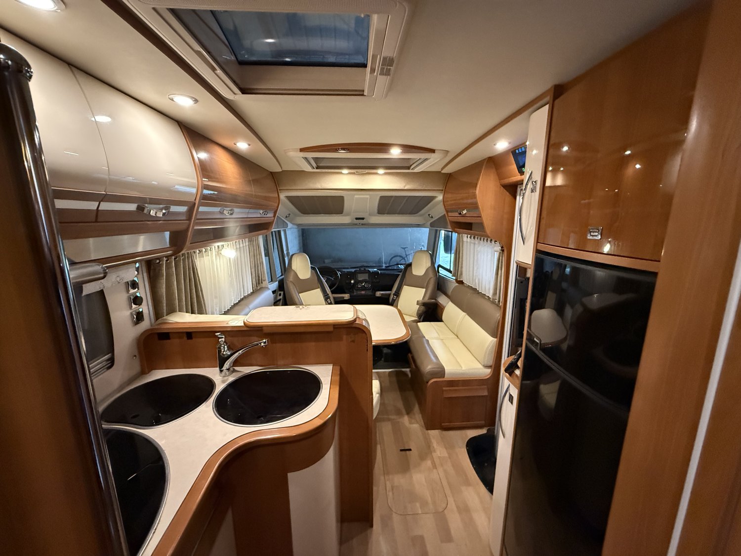 L’intérieur profite de la finition DESIGN EDITION, avec un mobilier ELEGANCE brillant intégrant des moulures en bois d’érable massif, apportant chaleur, noblesse et luminosité à l’ambiance. La configuration inclut un grand salon convivial, une cuisine bien équipée, un lit central réglable en hauteur sur soute garage, et un lit de pavillon avant, permettant de voyager à deux avec un vrai confort ou en famille selon les besoins.