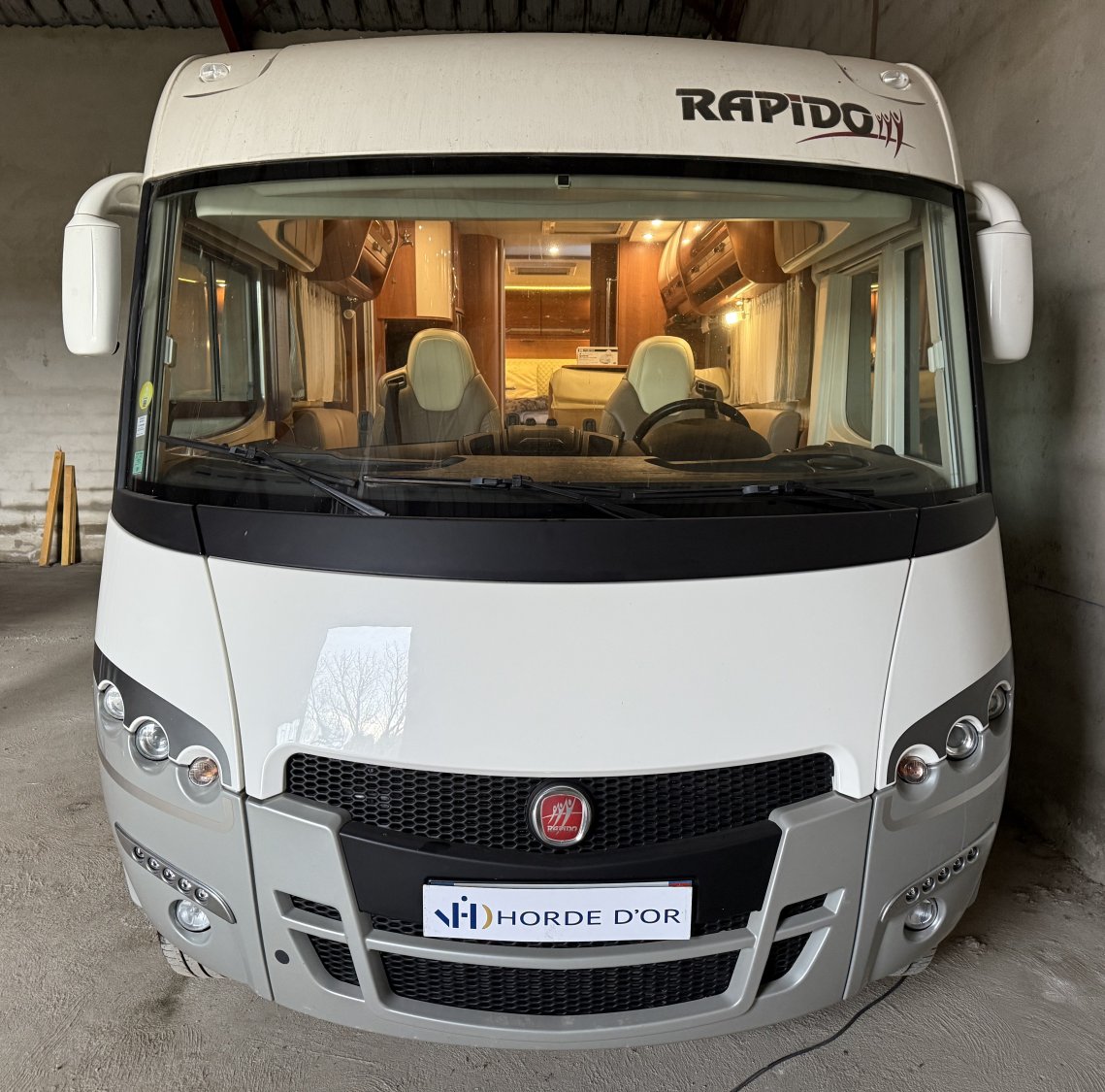 Modèle haut de gamme de la série 90dF, ce Rapido 9000 dFH de 2016 s’adresse aux amateurs de voyages longue durée. Motorisé par le Fiat 3.0L 180 CH avec boîte automatique, il repose sur un châssis AL-KO 4,4T à suspensions indépendantes, reconnu pour sa tenue de route, sa stabilité et sa capacité de charge supérieure.