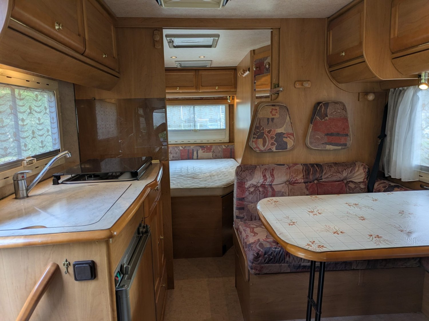 Camping-car ancien mais robuste, parfait pour un premier achat ou une première utilisation. Petit budget mais grosse capacité : 4 couchages, salle d’eau avec douche et WC, nombreux rangements. Contrôle technique impeccable, courroie de distribution et amortisseurs changés récemment. Spacieux et prêt à voyager sereinement.