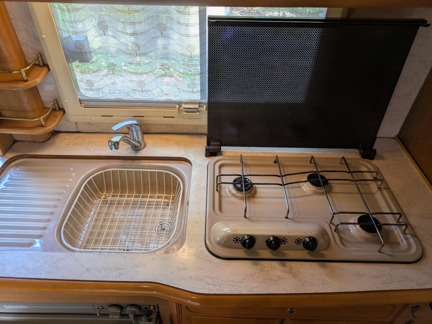 STORE EXTERIEUR 4.5M, GAZINIERE 3 FEUX, PORTE VELO, RAFRAICHISSEUR D' AIR, REFRIGERATEUR TRI MIX, DOUBLE CLOISON DE SEPARATION, SALON FACE A FACE, ASPIRATION CENTRALISEE, CHAUFFE-EAU GAZ