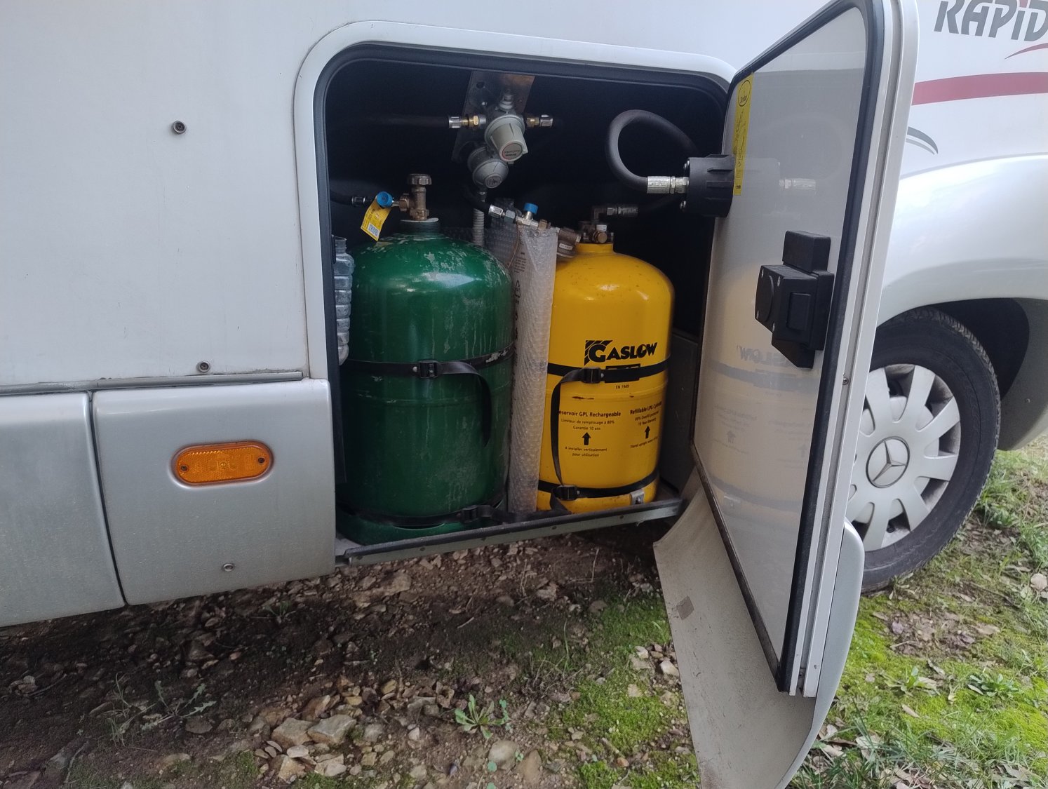 Ce Rapido 997 M est également taillé pour l’autonomie et la liberté. Il est équipé de deux batteries GEL de 100 Ah, offrant une réserve d’énergie fiable et durable pour profiter pleinement des étapes hors camping. Le convertisseur 12V/220V permet d’utiliser sans contrainte les équipements électriques du quotidien, apportant un confort digne de la maison, même loin de toute prise. L’installation GPL dédiée à la cellule renforce encore cette indépendance : plus besoin de gérer les bouteilles de gaz, le ravitaillement est simple, économique et accessible partout en Europe.