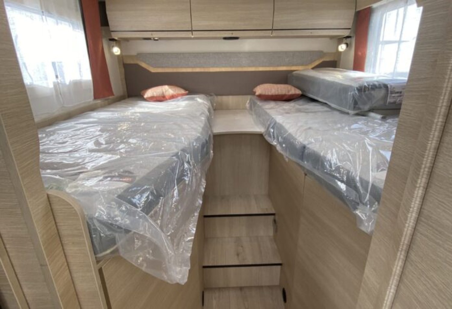 Profilé compact de chez Rapido en version 65 ans avec une dotation de premier niveau : Batterie lithium 100 Ah, panneau solaire 150 w et pack smart offert.