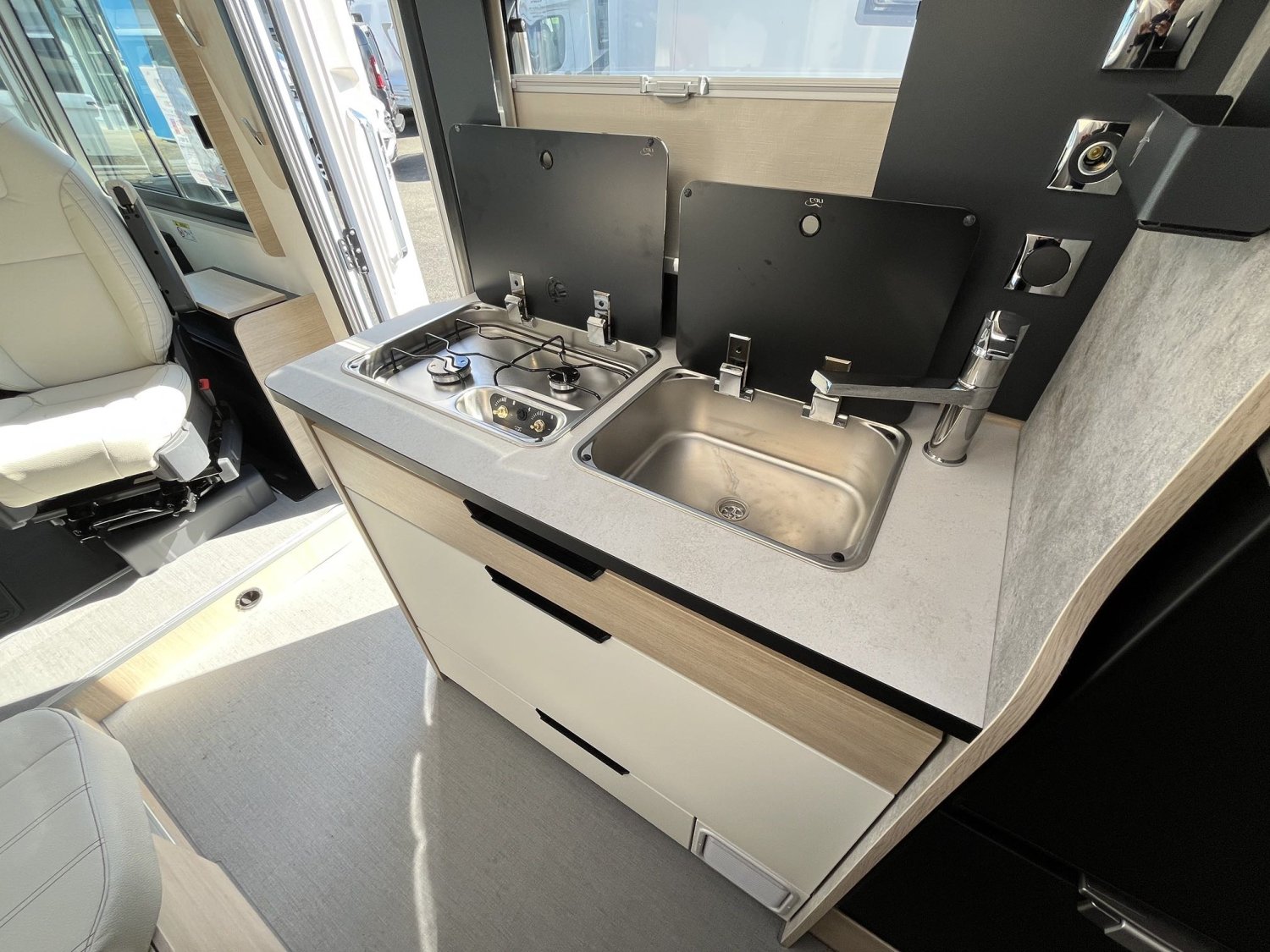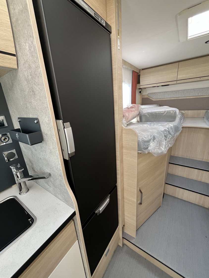 Options usine du modèle présenté :PACK SELECT : camera de recul, station CARPLAY/Radio DB, pneus 4 saisons,3 900 EURTraction + et hill descent, lame à ressort en composite, 2e batterie cellule AGMPorte cellule 2 pts et porte moustiquaire, Store plissée cabine + parebrise, 2 plip Chauffage truma 6 EH (Diesel et Electrique) avec kit altitude930 EURAmbiance Milan500 EURKit Lino200 EURPack smart: jantes alu 16″, volant cuir, aérateur gris, commandes au volant1 500 EURBoite automatique3 500 EUR