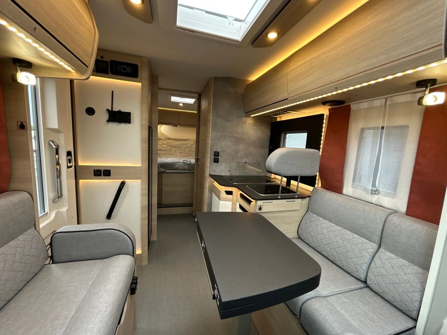 Cabine noire métallisée Décoration extérieure inédite et exclusive PACK SMART de série (jantes alliage léger 16" bi-ton, volant cuir, habillage gris sur aérateur) PACK RELAX de série (TPMS, frein de parc électrique) Station multimédia DAB avec grand écran tactile de 9", navigation intégrée et fonctions APPLE CAR PLAY/ANDROID AUTO Ambiance intérieure unique LUCEO avec accessoires noirs Ambiance tissu inédite et exclusive avec matelassage au motif géométrique : DUBROVNIK TRUMA Combi 4 EH DIESEL (diesel + électrique) avec kit altitude et commande de chauffage CP PLUS (implique 2e batterie cellule) Réservoir d’eaux usées chauffé Pack SELECT de série