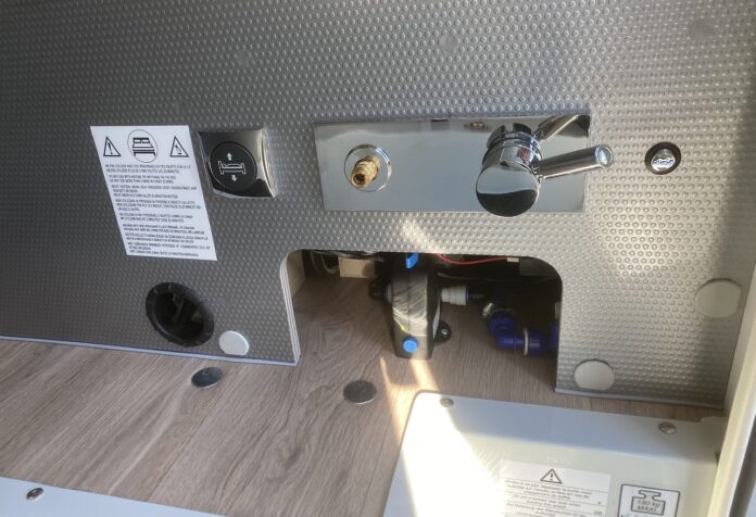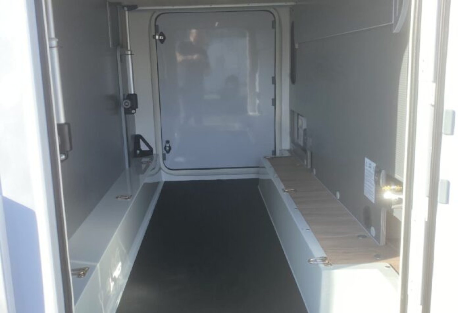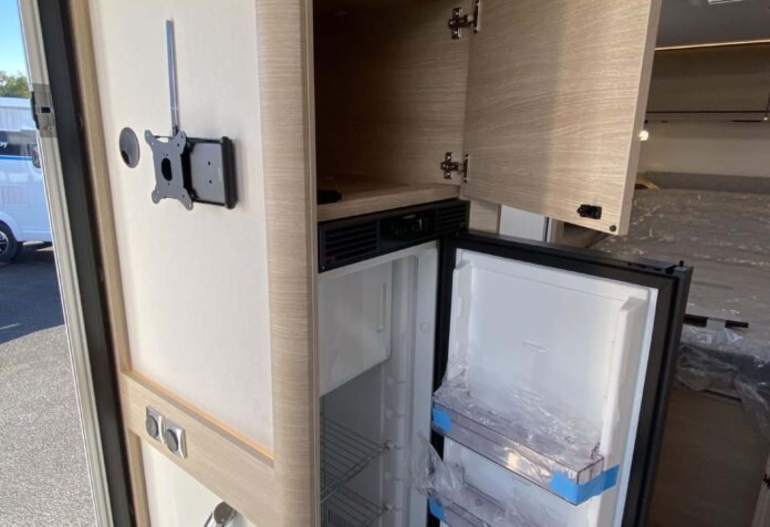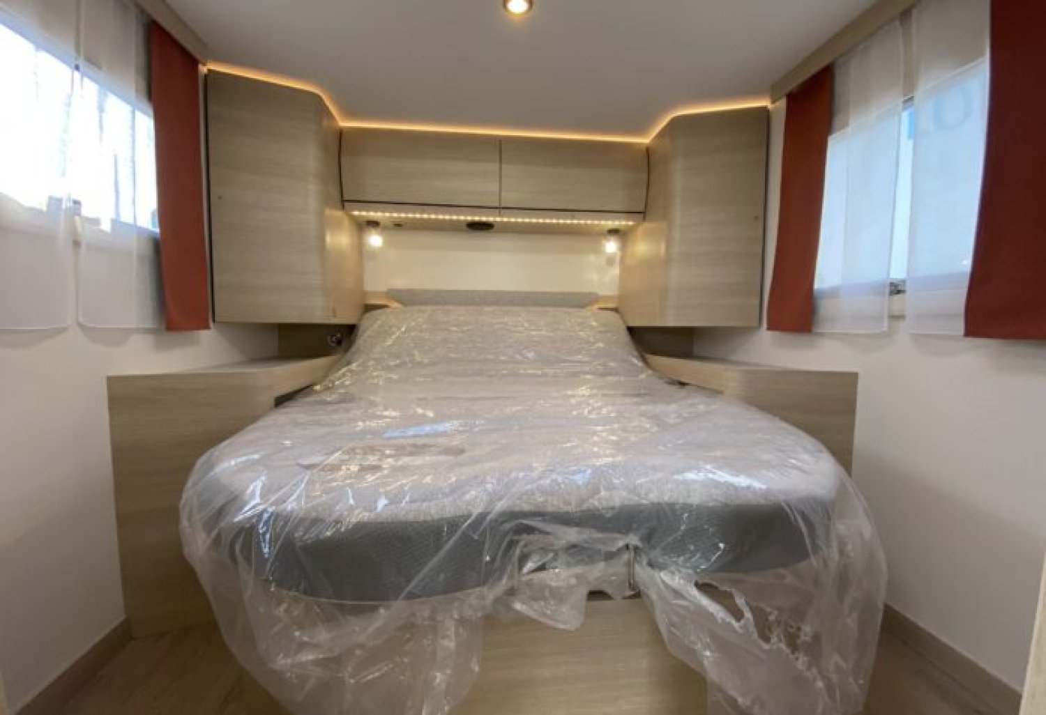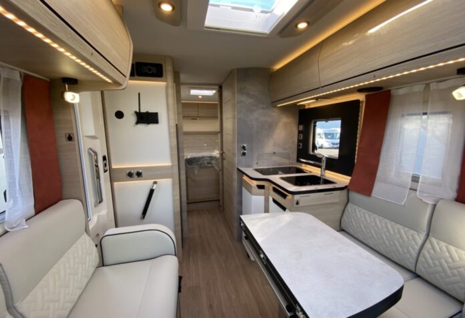 Si ce profilé se présente dans des dimensions compactes, son implantation ne fait aucun compromis sur le confort intérieur : lit central, douche séparée, cuisine en L et salon avec banquette face face avec des solutions d’agencement pertinentes.