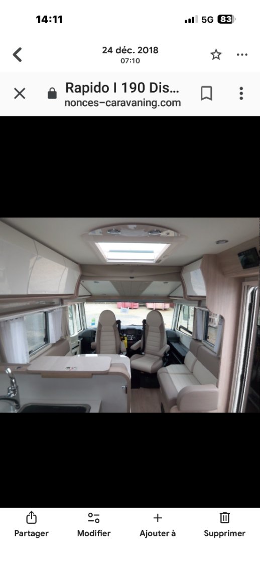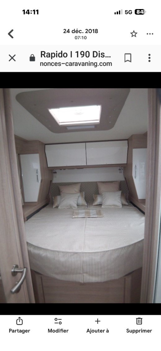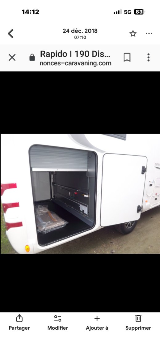 Camping car Rapido I190 distingtion 180ch boîte auto, lit central, 2 TV antenne satellite auto , 3 batteries de 100 w avec convertisseur 1800w , 4 panneaux solaires 500 w, stabilisateur par vérin hydraulique, porte vélos état proche du neuf