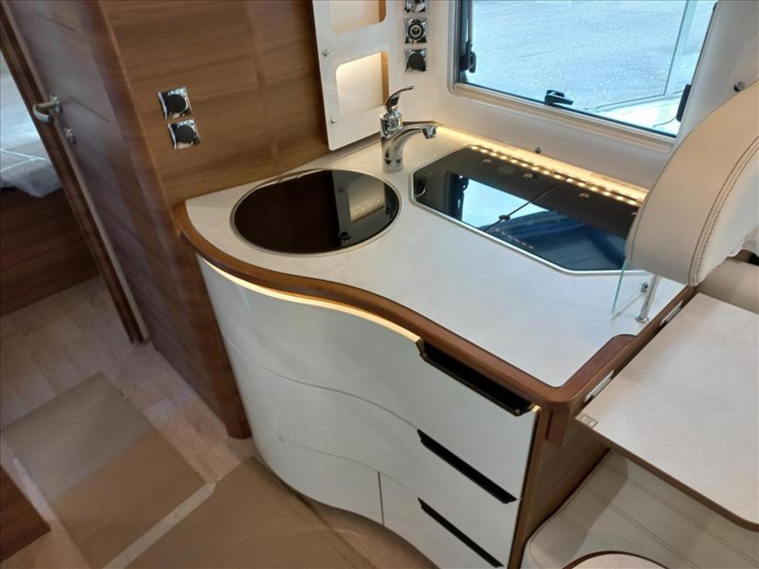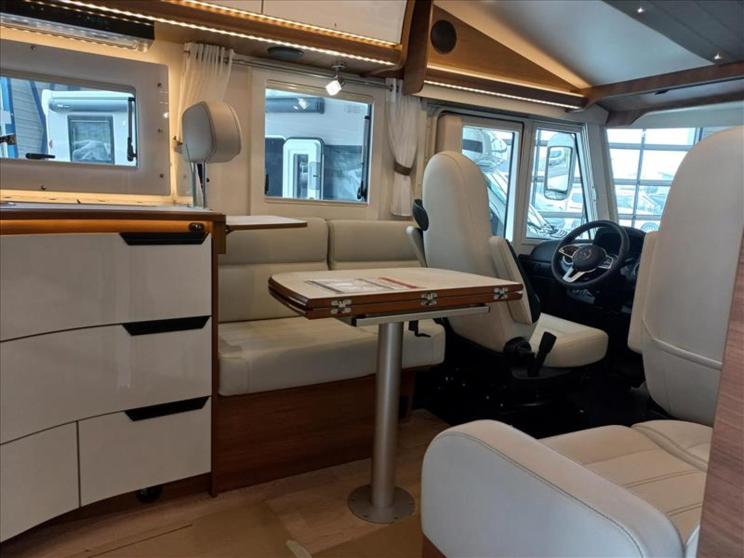 Extension plan de travail sur côté bloc cuisine, Moustiquaire de porte cellule, Réfrigérateur grande profondeur 171 L, Soute/garage chauffé, Stop & Start, Régulateur de vitesse TEMPOMAT avec limiteur, Accoudoir banquette salon, Aide au démarrage en côte, Inverseur gaz automatiqueavec système anticrash, Double plancher rangement traversant avec accès ext et int, Chauffage TRUMA Combi 6 CP PLUS, Double plancher chauffé et éclairé, ESP correcteur électronique de trajectoire, Eclairage d'ambiance 100% LED salon,cuisine et chambre