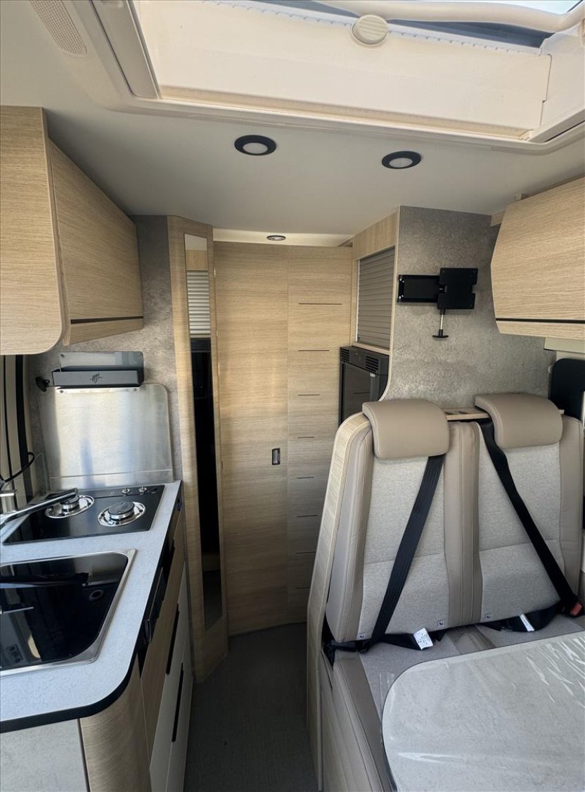 Freinage ABS, Douchette extérieure eau chaude / froide, Grand réfrigérateur à compresion 146 L, Grande soute modulable pour contenir 2 vélos, 2 batteries cellule AGM 92 Ah, Airbags conducteur et passager, Chauffage TRUMA Combi 4 avec CP PLUS, Moquette cabine, Panneau de commande digital, Traction + avec Hill descent Control, Volant et pommeau de levier de vitesse cuir, Précâblage panneau solaire et caméra de recul, Roue de secours, Régulateur de vitesse avec limiteur, Rétroviseurs extérieurs électriques et dégivrants, Vraie douche séparée/maxi salle d'eau, Vérouillage centralisé des portes cabine et latérale avec té, Stop & Start, Système anticrash (permet de rouler avec le chauffage gaz)
