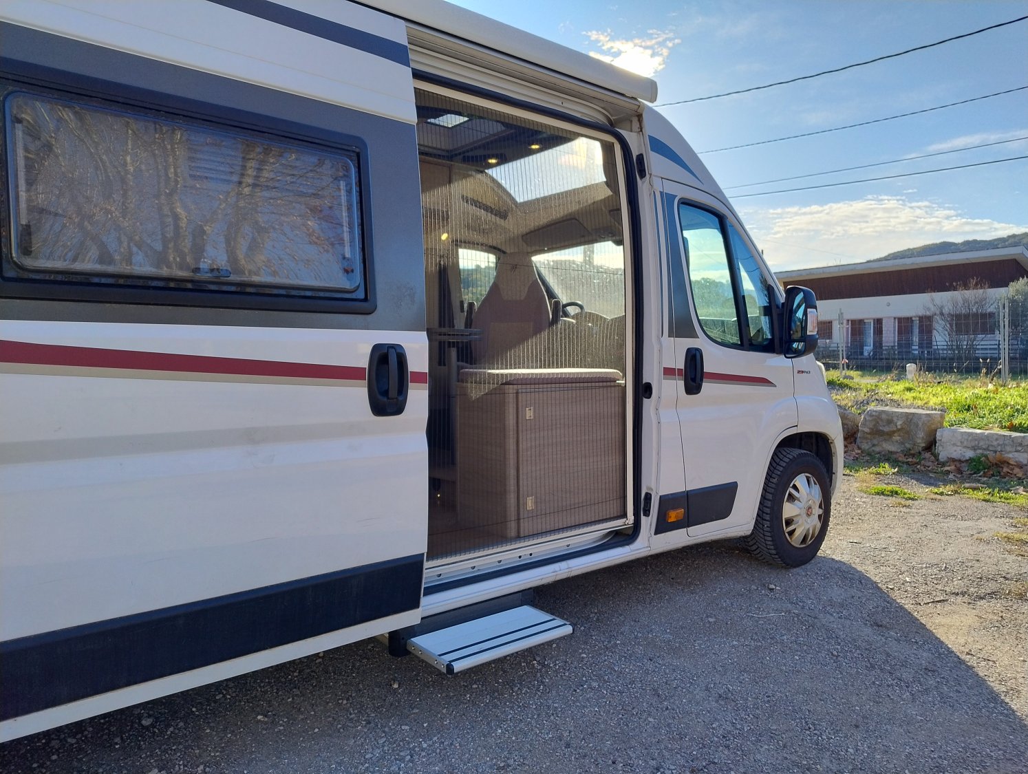 CHAUFFAGE COMBI TRUMA 4, REFRIGERATEUR/CONGELATEUR, STORE EXTERIEUR 4M, GAZINIERE 2 FEUX, ECLAIRAGE LED, MOQUETTE CABINE, MOUSTIQUAIRE DE PORTE CELLULE, PORTE VELO, RALLONGE DE TABLE, REFRIGERATEUR TRI MIX, STORES PLISSES DE CABINE, LANTERNEAU PANORAMIQUE, DOUCHETTE EXTERIEURE EAU CHAUDE ET FROIDE