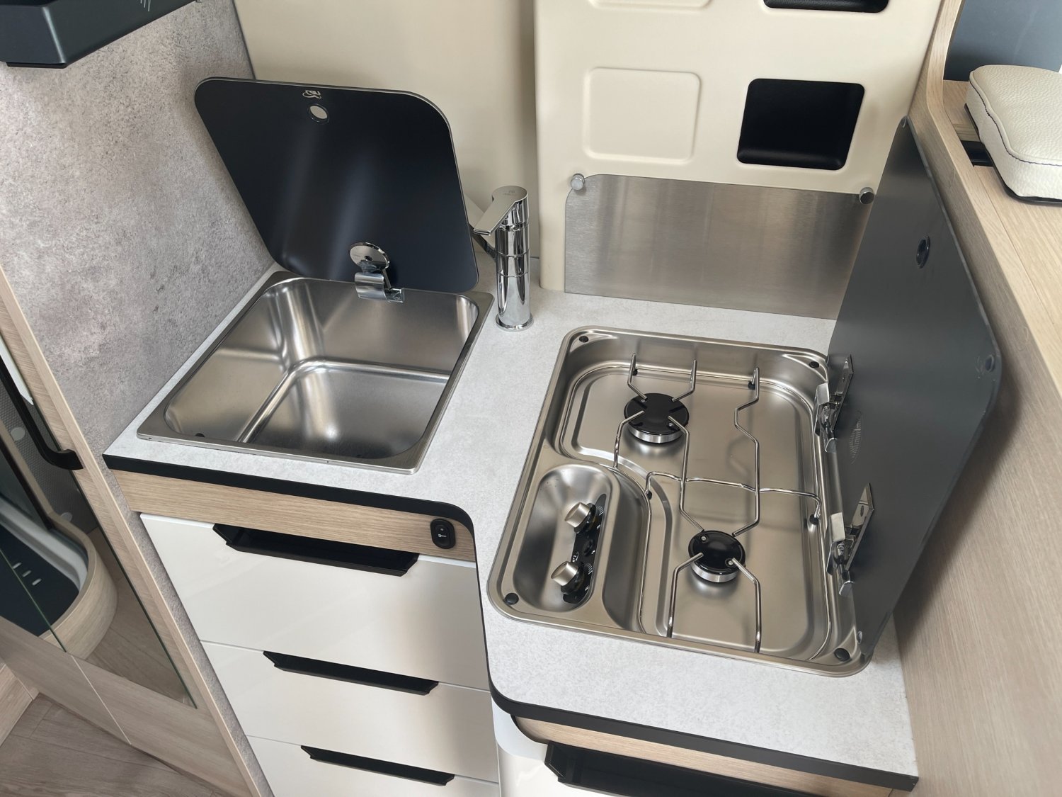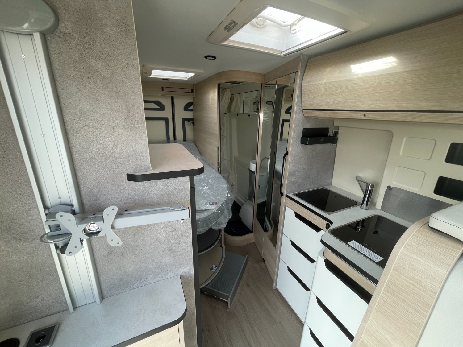 RESERVOIR EAUX USEES CHAUFFE, MARCHEPIED ELECTRIQUE, COFFRE DE RANGEMENT SOUS DINETTE, DIRECTION ASSISTEE ELECTRIQUE, PANNEAU DE COMMANDE DIGITAL, CHAUFFAGE TRULA COMBI 4 AVEC PANNEAU CDE CP PLUS, 2 BATTERIES CELLULE AGM 92AH, PRE CABLAGE PANNEAU SOLAIRE, FREINAGE ABS, PRE CABLAGE 12v HDMI POUR TV+SUPPORT, GOUTIERE DE PROTECTION PORTE LATERALE AVEC ECLAIRAGE LED, PRISE EXTERIEURE 230V, EXTANSION PLAN DE TRAVAIL AVEC REVETEMENT INTEGRE, REGULATEUR DE VITESSE AVEC LIMITEUR, ECS AVEC ASR, ROM AIDE AU DEMARRAGE EN COTE, GRANDES PENDERIES LINGERE, DOUCHETTE EXTERIEURE AVEC EAU CHAUDE/EAU FROIDE, SUSPENSION ESSIEU ARRIERE RENFORCEE, MAXI EVIER INOX LISSE AVEC COUVERCLE VERRE NOIR BRILLANT, GRAND REFRIGERATEUR A COMPRESSION 146L, SYSTEME DE FIXATION ISOFIX