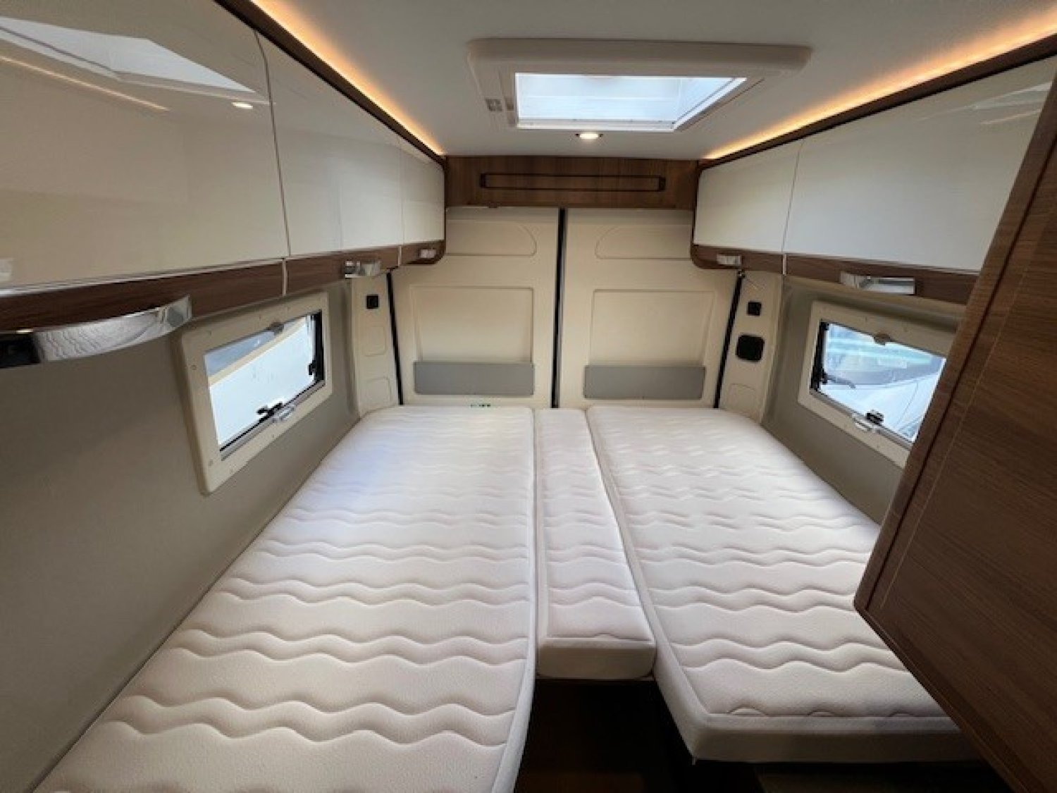 Un fourgon en lits jumeaux, salle de bain vario et très bien équipé.