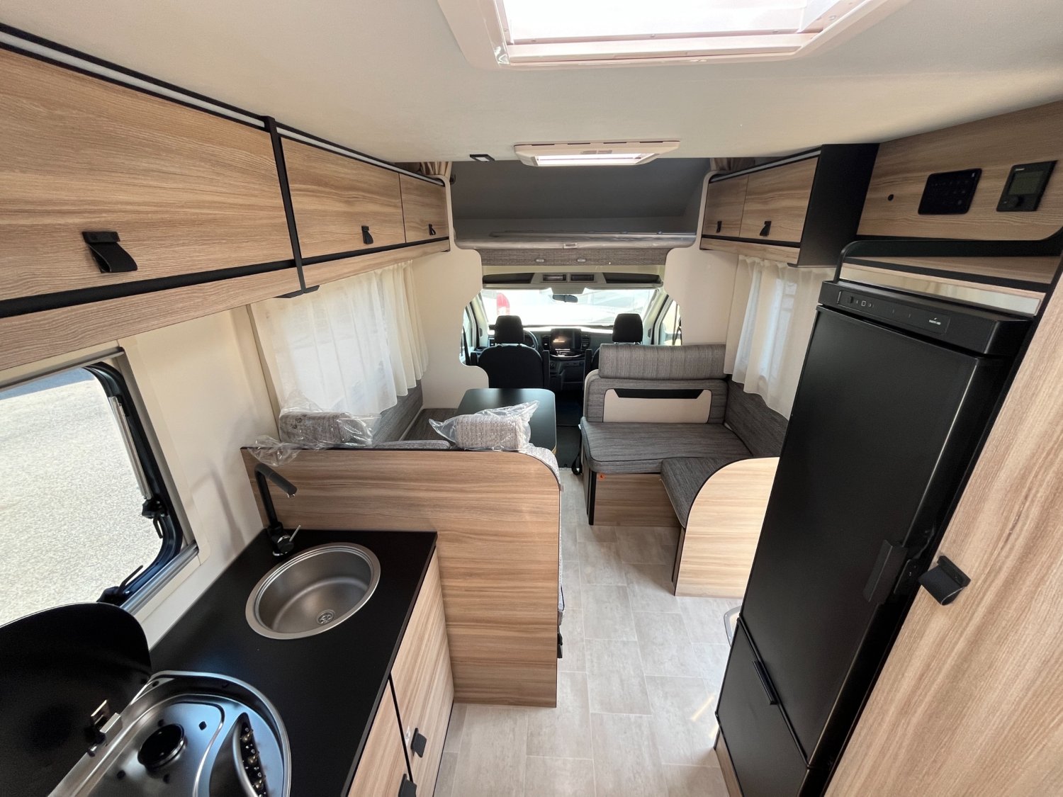Camping-car profilé neuf, collection 2025, motorisation Ford 165 ch avec boîte automatique. Équipé du Camper Premium Pack et du Pack Bronze pour plus de confort et de praticité. Dispose d’une cassette + moustiquaire pour salle de bains, jantes alu 16" noires, batterie cellule, fixation ISOFIX pour siège enfant. Aménagement pensé pour le voyage en famille avec confort et sécurité.