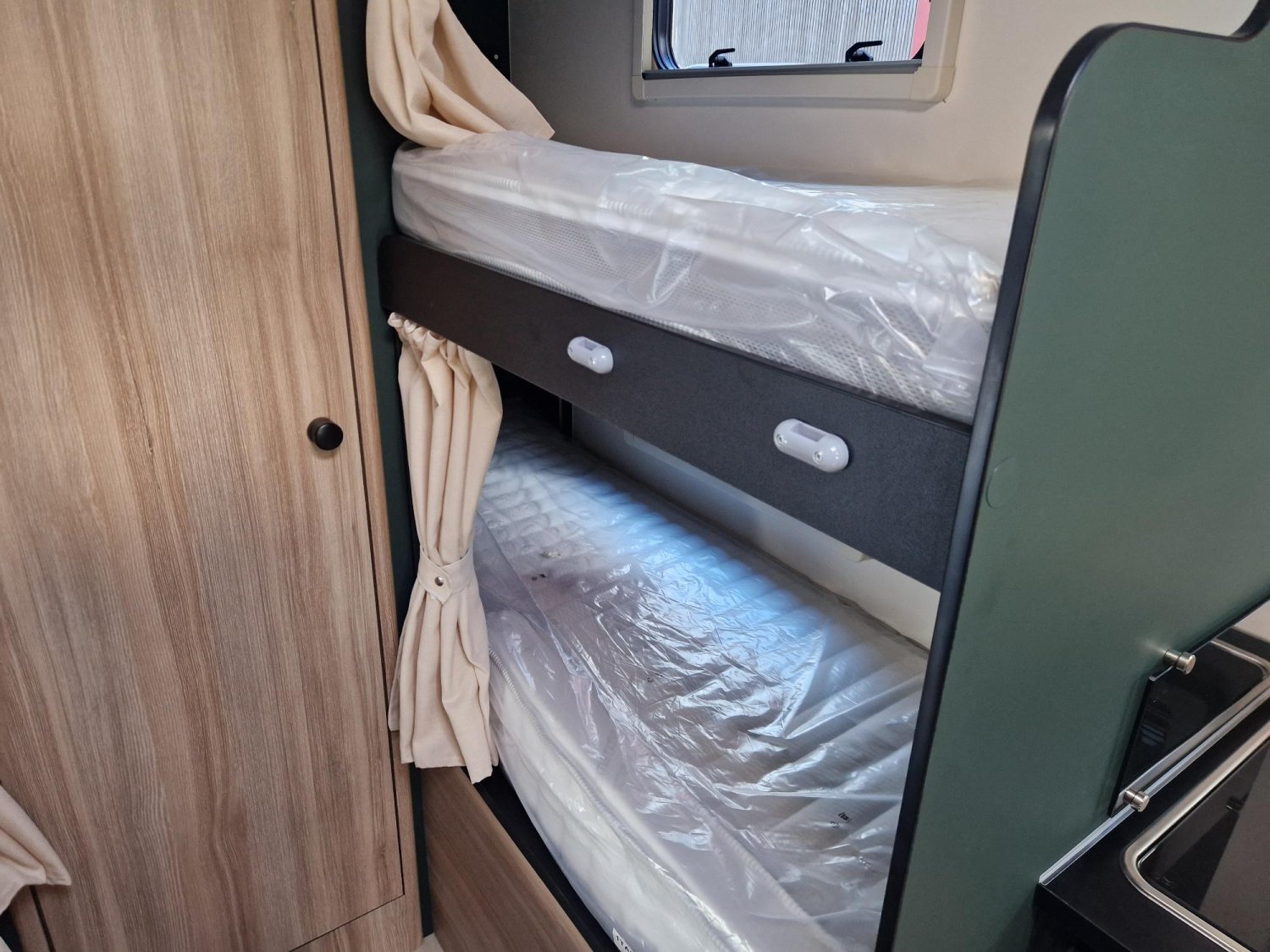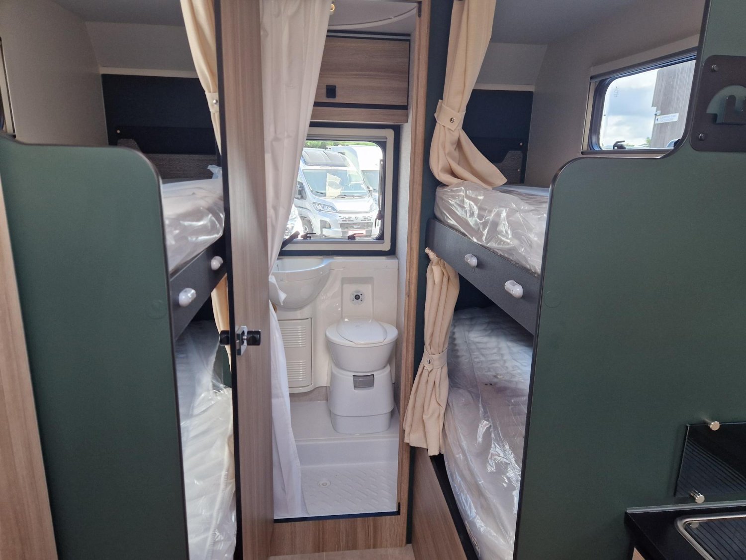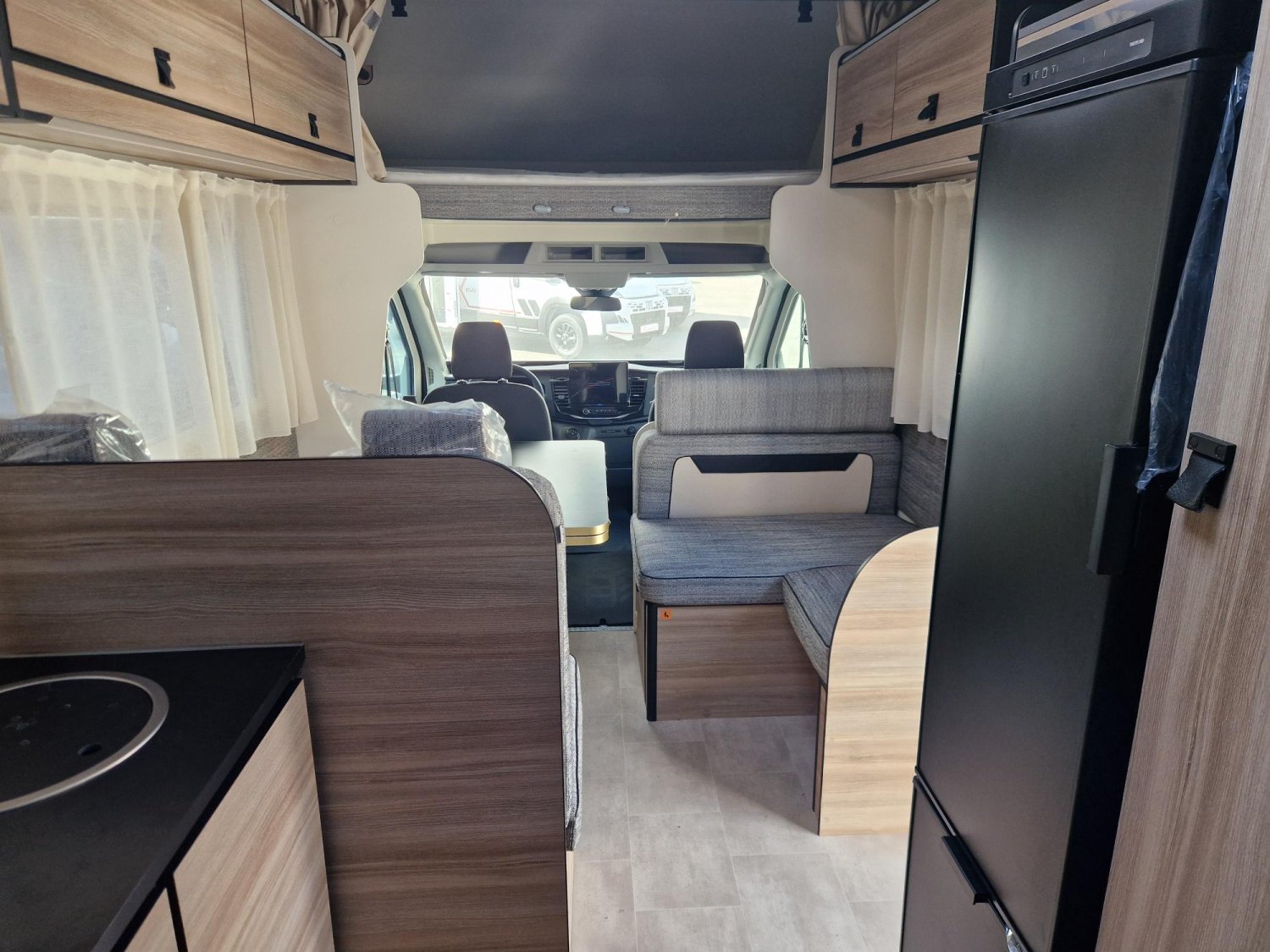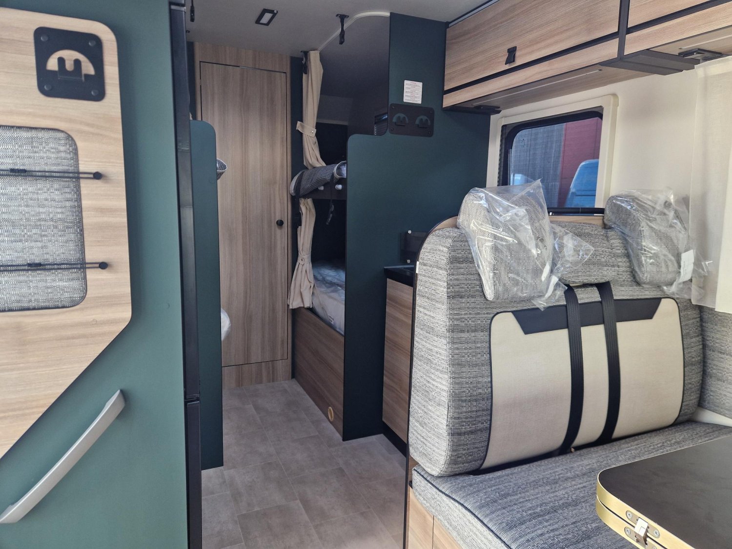 Capucine de marque leader, avec deux lits doubles superposés, grand salon, 6 couchages et 6 places carte grise, sur une base Ford en BVA.