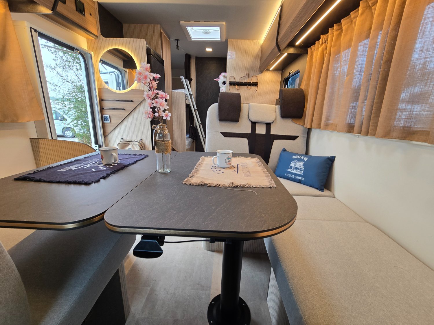 Spacieux avec son salon face/face en plus des sièges avant qui pivotent pour offrir un espace de vie plus agréable pour passer de bons moments avec vos proches.