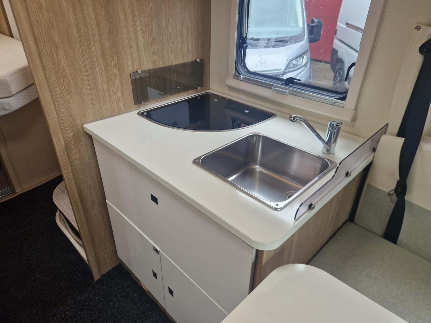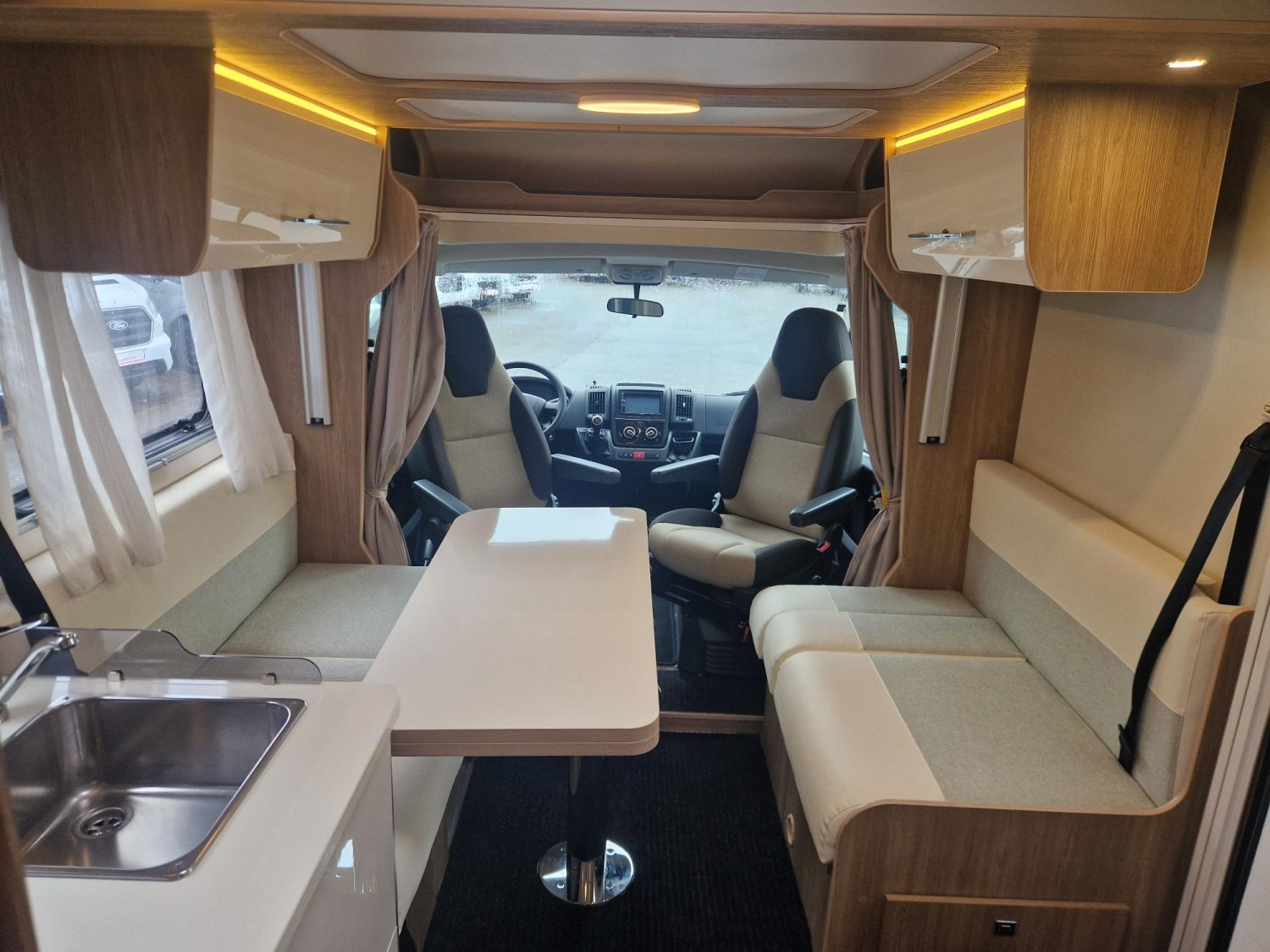 Profile de marque leader avec lit central et lit de pavillon électrique 2 places, douche et WC séparés, salon en face face et cuisine en "L" équipée d'un grand frigo. Première main, petit kilométrage, état proche du neuf. Sur une base Fiat 2.3 l / 140 Cv.