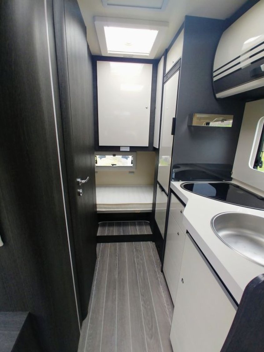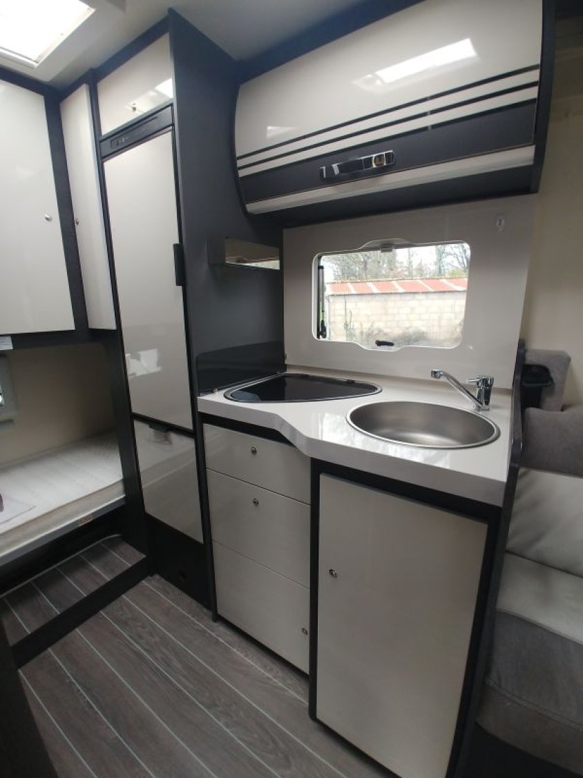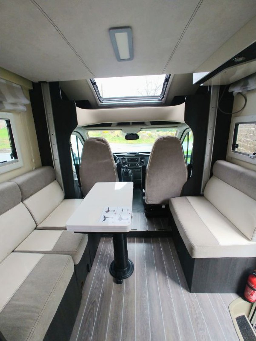 Petit camping-car de 6m20, très spacieux avec son salon face à face, espace lumineux, avec de multiples rangements et une importante charge utile.