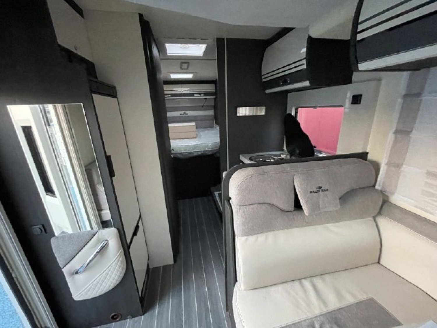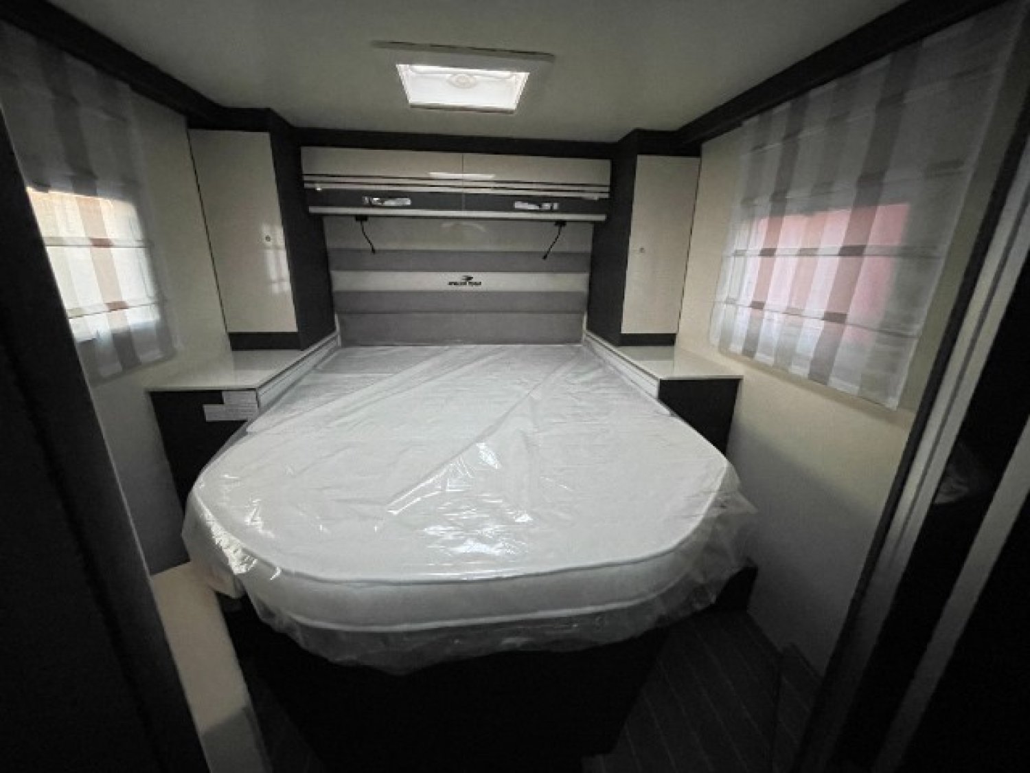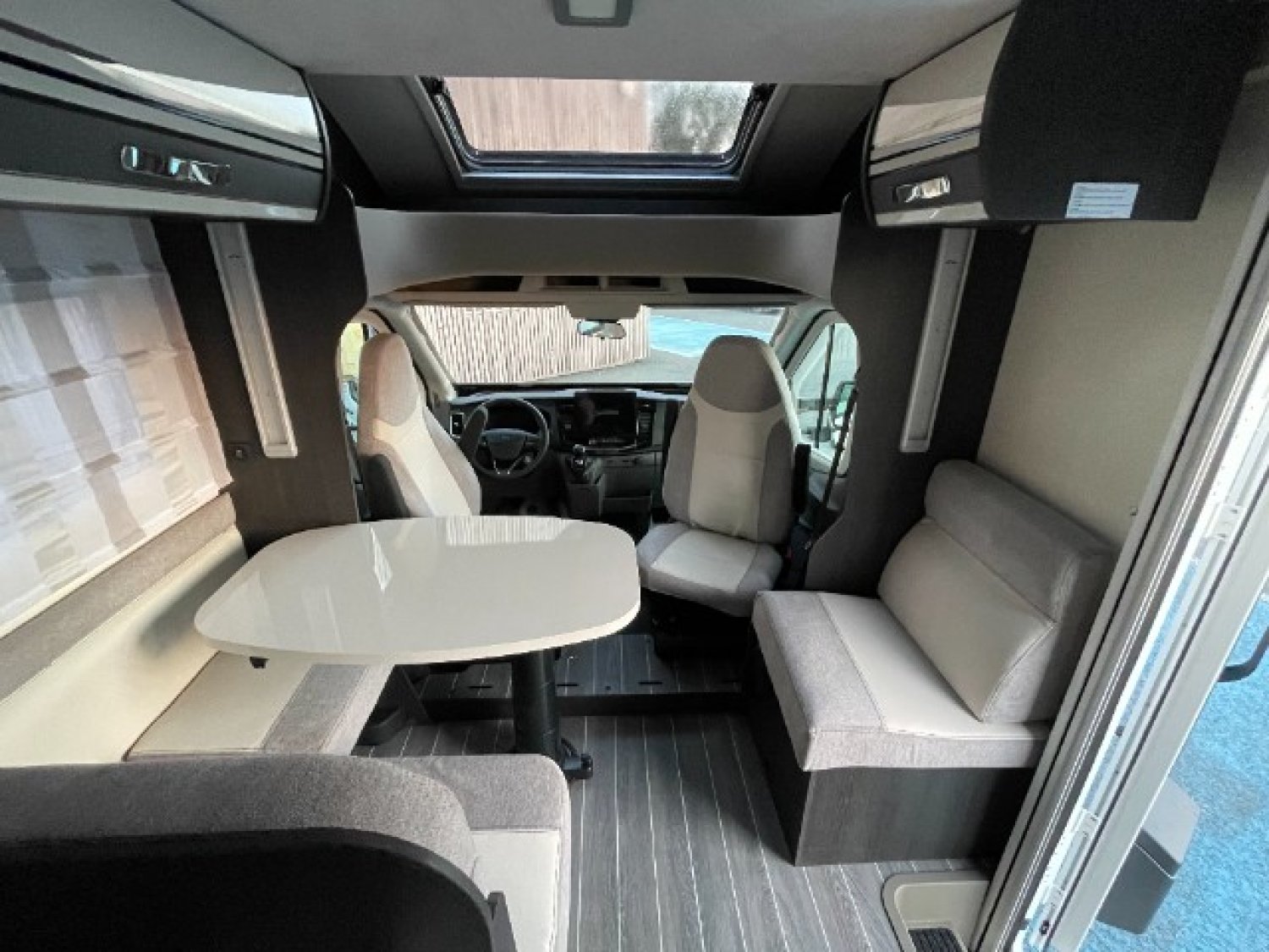 Camping-car profilé de 7,45 m sur châssis Ford Transit, offrant 5 places carte grise et 5 couchages. Équipé d’un grand lit central, d’un lit de pavillon électrique, d’un salon spacieux, d’une cuisine équipée, et d’une salle d’eau séparée avec WC et douche. Doté de série du Pack Ford incluant moteur 165 CV, climatisation automatique, caméra de recul, régulateur de vitesse, panneau solaire 200 W avec régulateur MPPT, et stores occultants cabine. Idéal pour des voyages en famille ou entre amis.