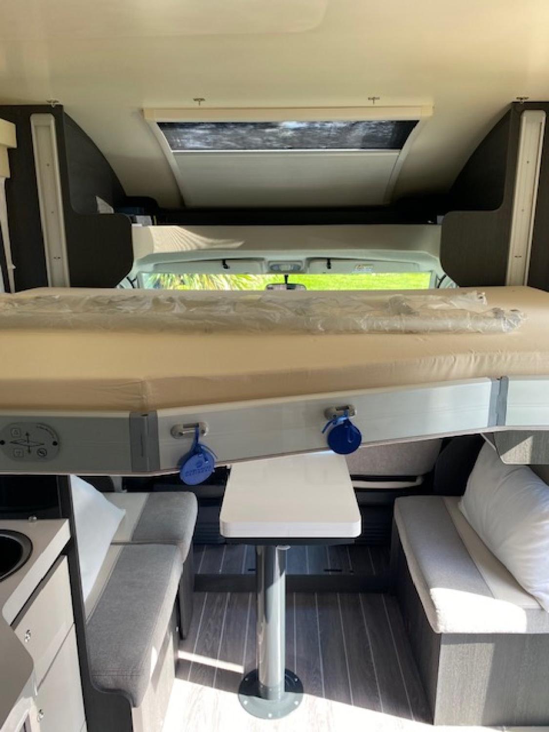 Attache remorque, panneau solaire, alimentation chauffage, eau chaude, cuisine 1 bouteille GPL et connecteurs UE et une bouteille gaz, climatisation réversible cellule, suspension pneumatique réglage au tableau de bord, combiné radio, GPS, Bluetooth et caméra de recul, store banne extérieur, TV dans chambre arrière, lit central arrière électrique, lit électrique dans le salon, 4 places carte grise, 4 couchages, grande soute, test étanchéité d’avril 2025 OK, stores plissés, pare-brise, vitres latérales et sky vue. Moustiquaires sur toutes les ouvertures cellule, frigo 135 litres, douche, WC, lavabos séparés. Véhicules sous garantie.