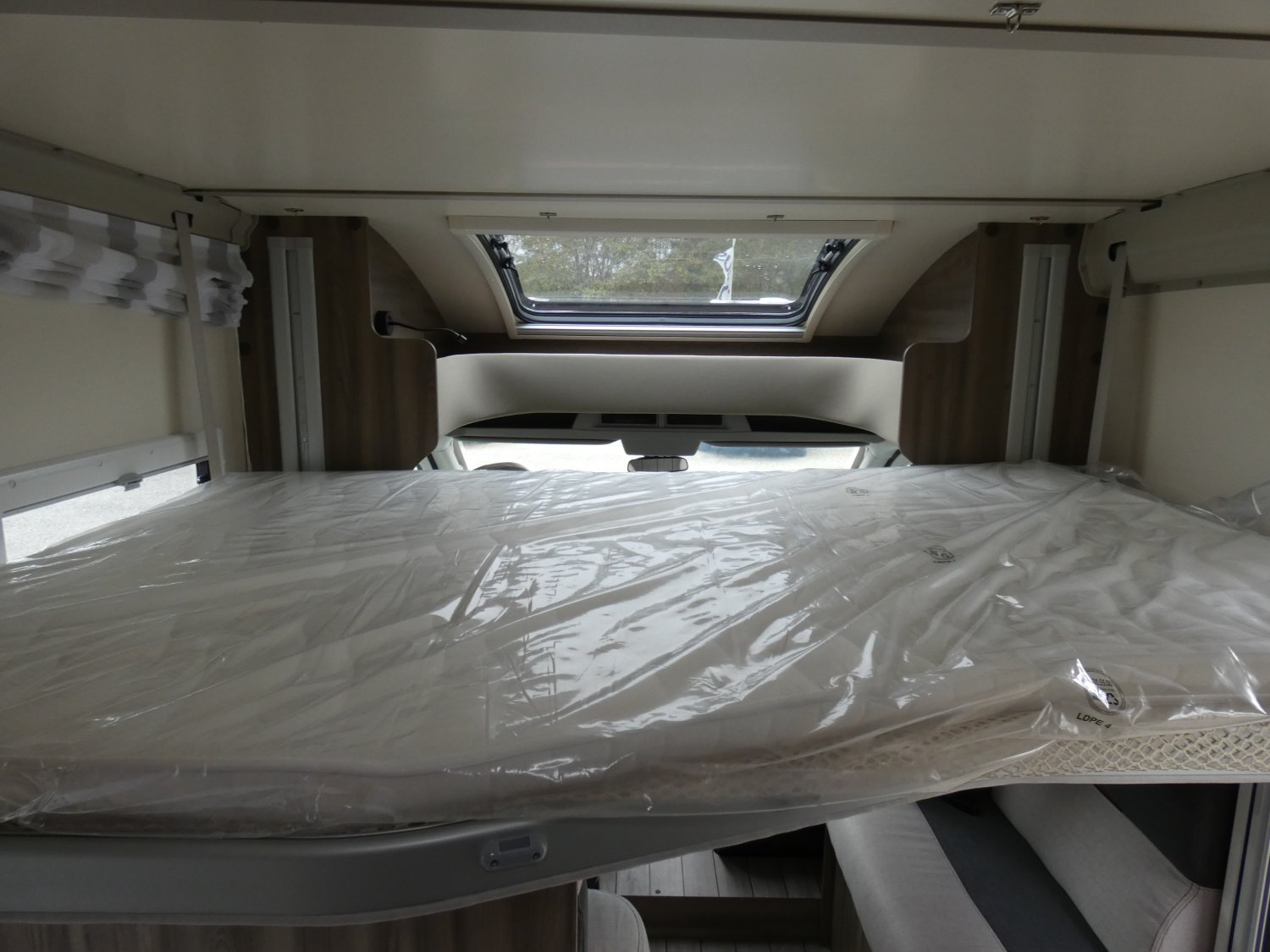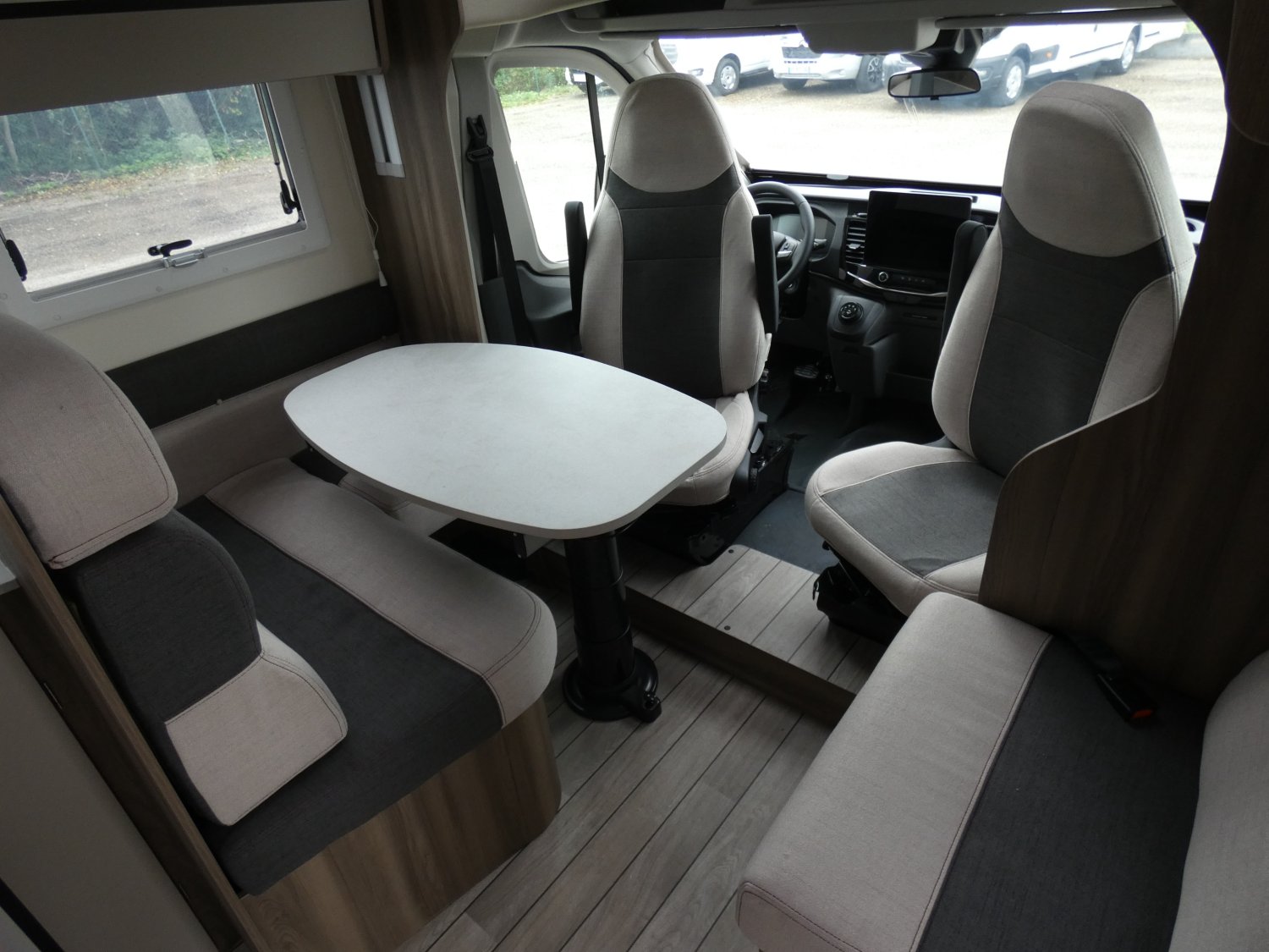 Aménagement original et très fonctionnel pour ce camping-car profilé ROLLER TEAM 266 TL. Sa salle de bain centrale allie praticité et rangements. Idéal pour des vacances inoubliables en famille grâce à son lit central arrière et son lit de pavillon électrique.