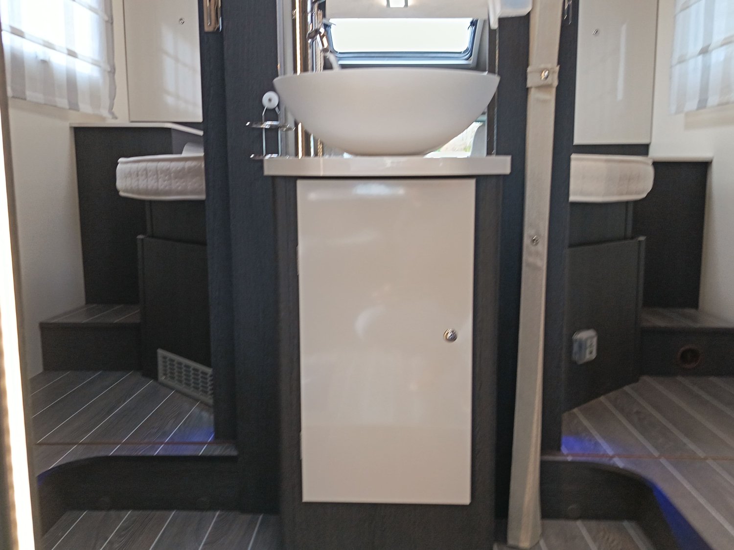 Très belle occasion avec une implantation rare et recherchée, proposant une véritable suite arrière avec double cloisonnement, vasque centrale, salon en face à face, lit de pavillon électrique, lit central, soute garage à hauteur variable. Très bel état général, mobilier chic et chaleureux.