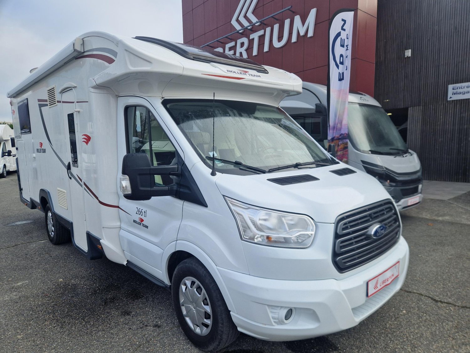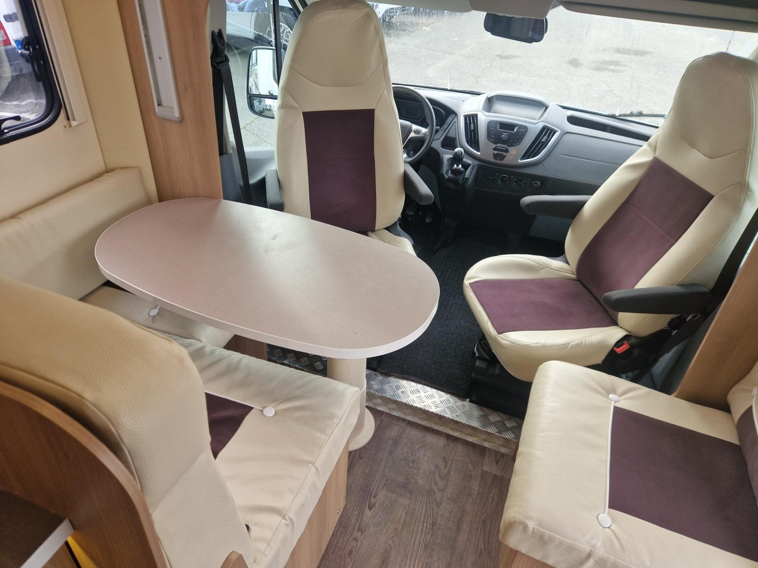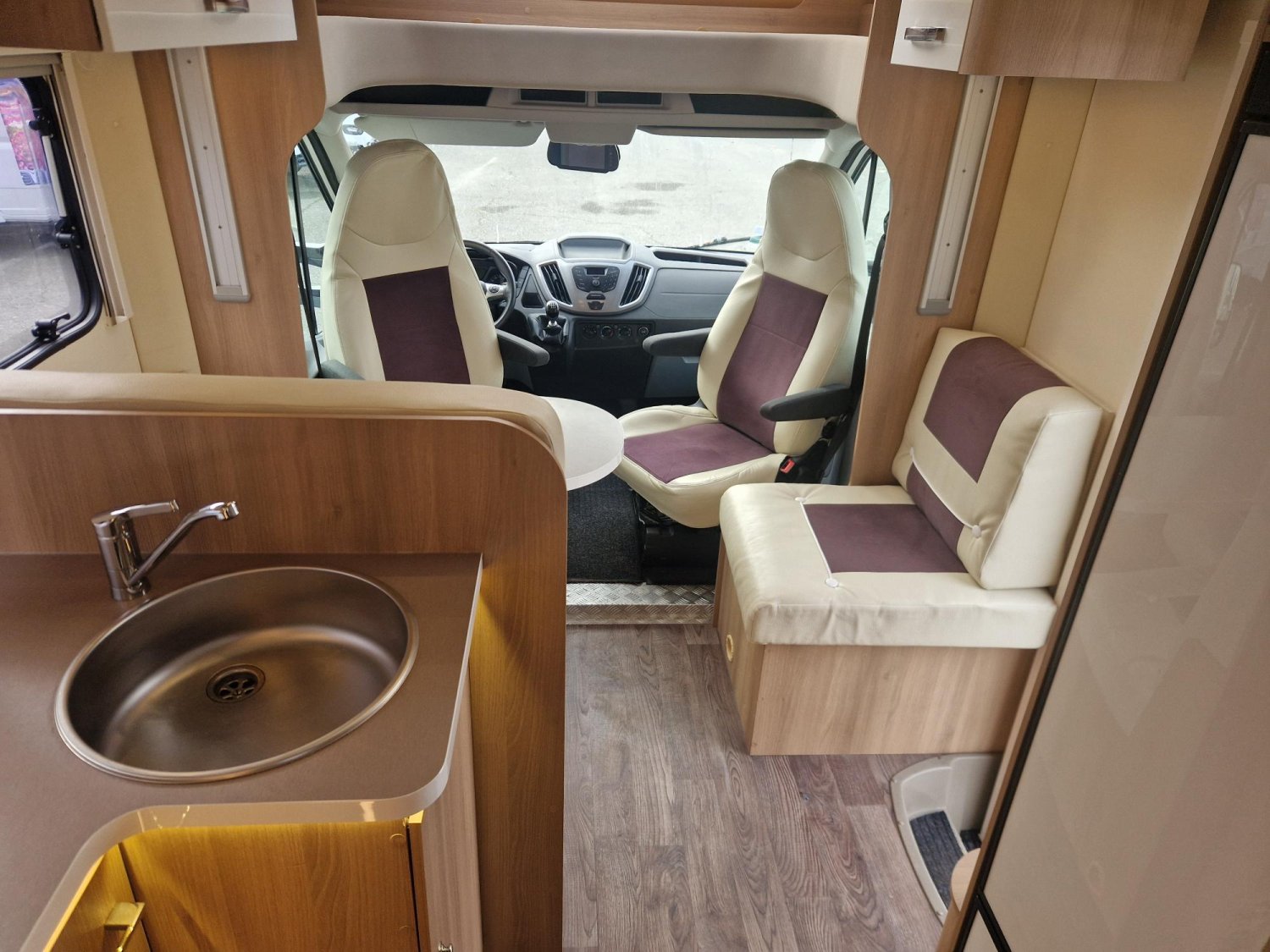 Profile de marque leader avec lit central modulable en hauteur, douche et wc séparés, cuisine en "L", et lit pavillon électrique 2 places. Très bien équipé, état proche du neuf, petit kilométrage, 5 couchages et 5 places carte grise, sur une base Ford 170 CV.