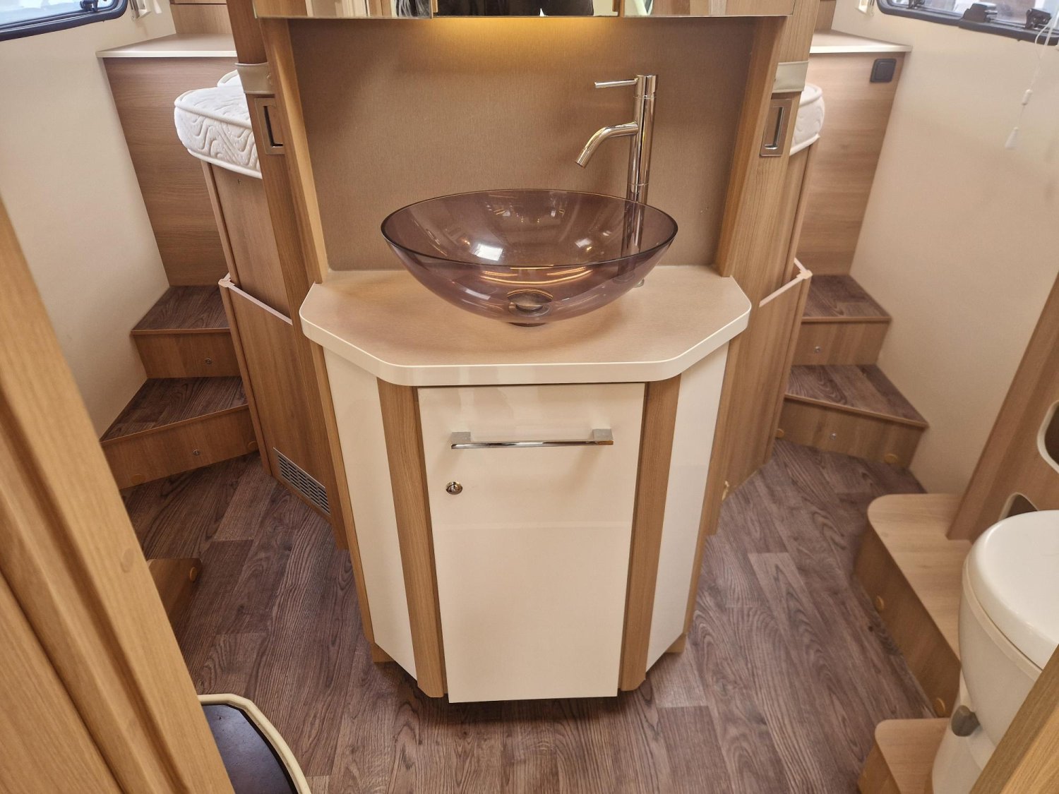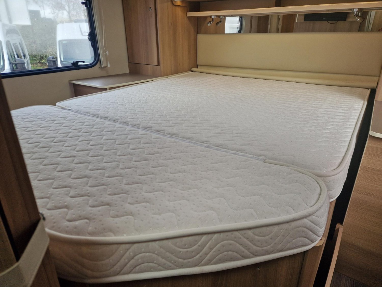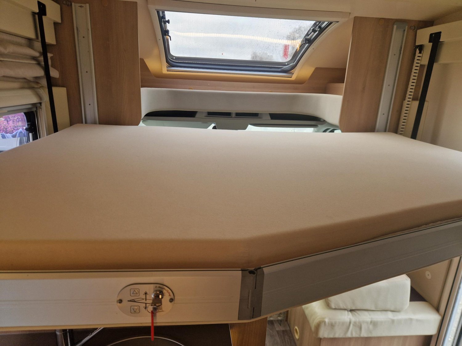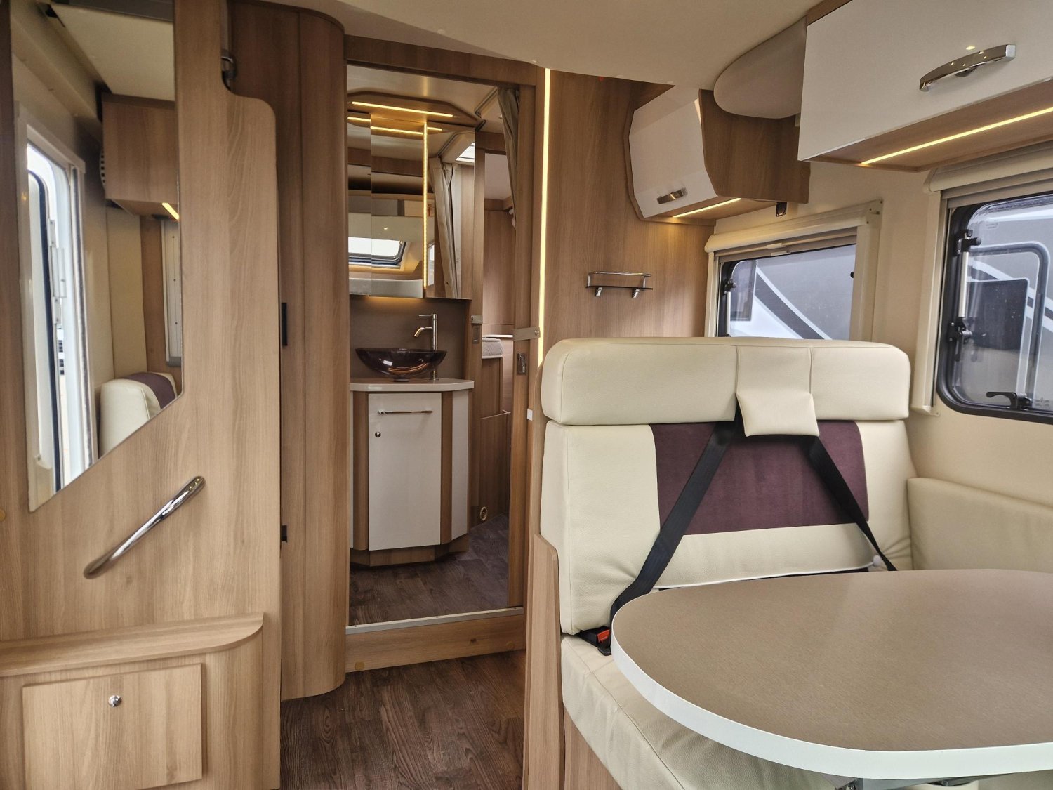 Profile de marque leader avec lit central modulable en hauteur, douche et wc séparés, cuisine en "L", et lit pavillon électrique 2 places. Très bien équipé, état proche du neuf, petit kilométrage, 5 couchages et 5 places carte grise, sur une base Ford 170 CV.
